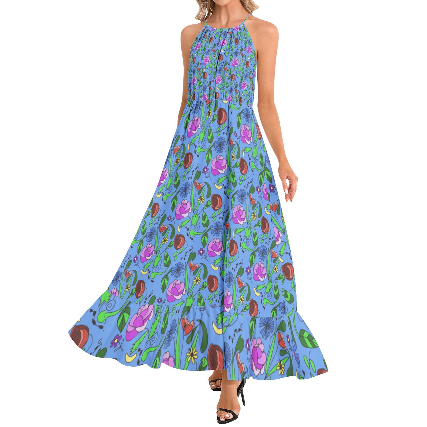Ruffle Hem Halter Neck Maxi Dress