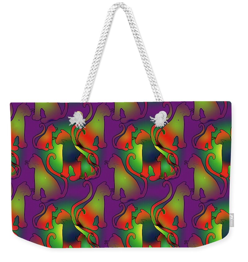 Expertly crafted with a colorful display of rainbow cats in silhouette, this Weekender Tote Bag is perfect for cat lovers. Made with durable materials, it's ideal for weekend getaways or everyday use. Show off your love for cats with this unique and eye-catching accessory.