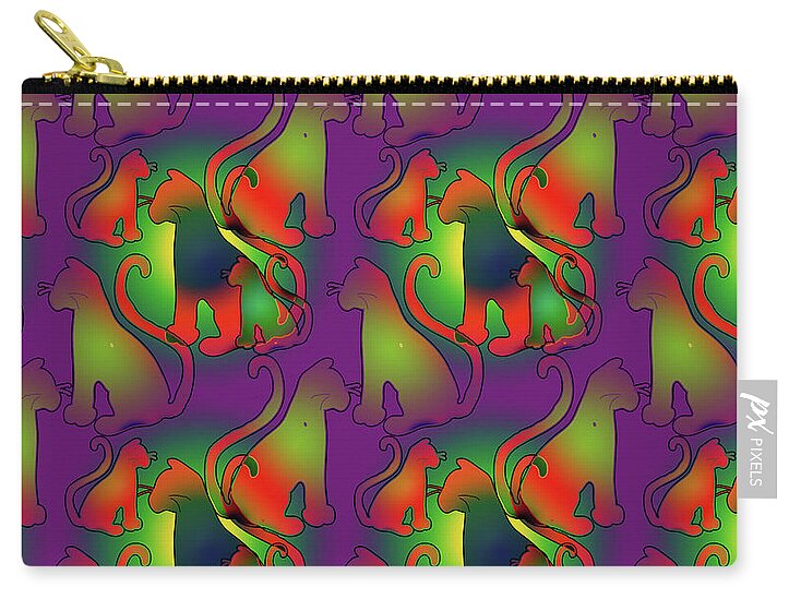 This zip pouch features a playful illustration of cats in a colorful rainbow silouhette against a vibrant purple background. With its spacious compartment, it is perfect for storing your essentials while on the go. Add a touch of whimsy to your everyday routine with this abstract rainbow cats zip pouch.