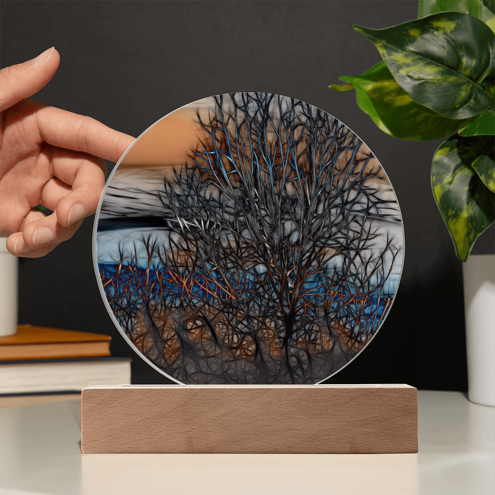 Your plaque will be crafted from premium acrylic with a professionally printed design for a polished look. It comes with a stylish wooden LED base, and you can choose between a USB plug-in option OR a cordless battery-operated option (requires 2 AAA batteries, not included). Both LED bases feature 7 vibrant colors, allowing the user to customize the lighting with various color changes and dynamic cycles.