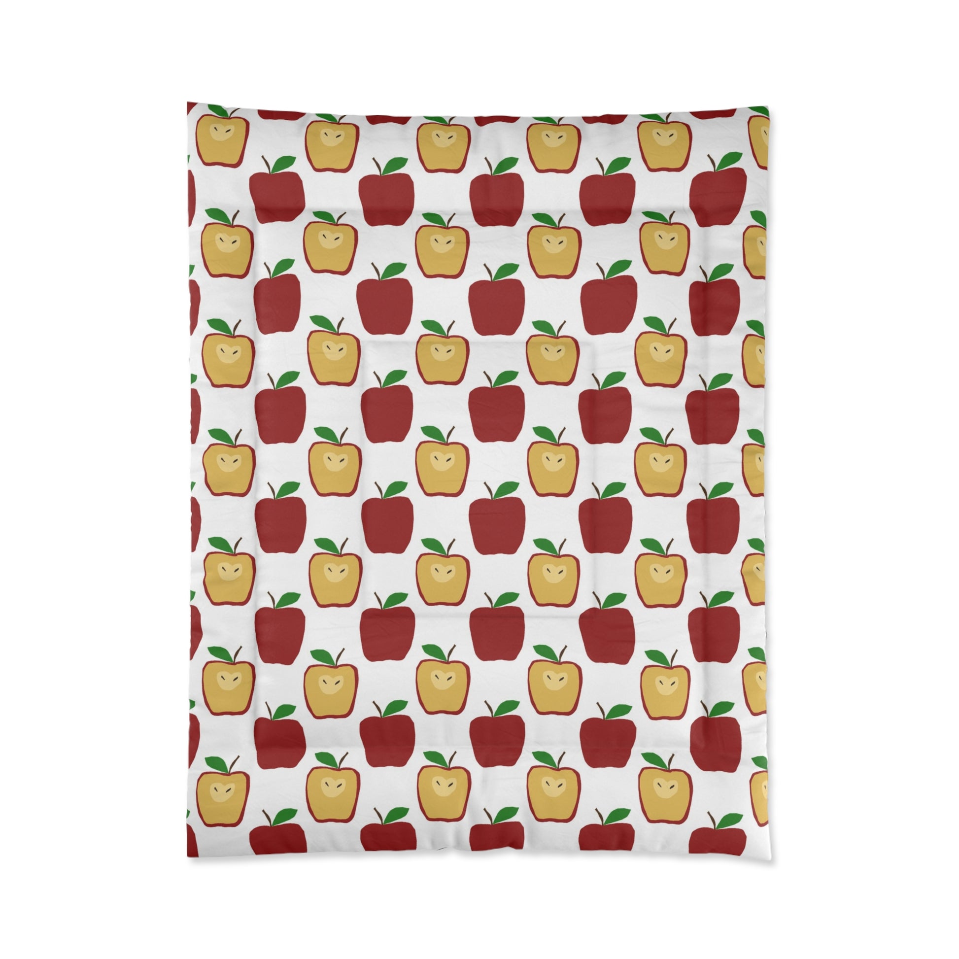 Apple Pattern Comforter - Cute Red & Yellow Apples Bedding for Kids, Dorms & Fall Decor