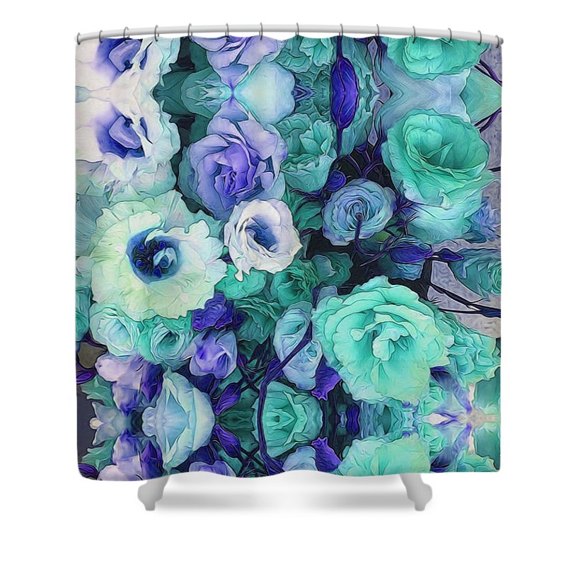 Aqua Flowers Kaleidoscope - Shower Curtain
