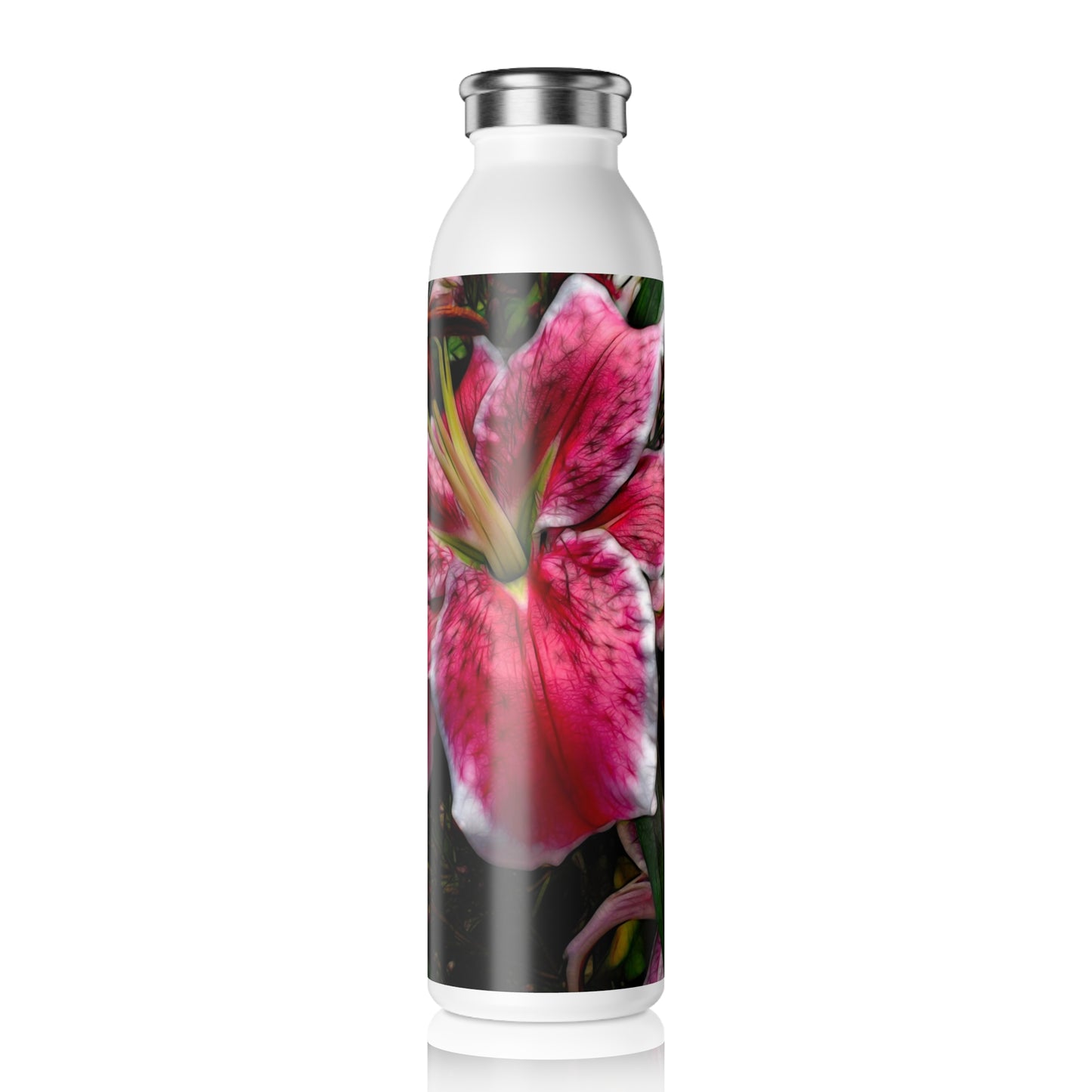 Big Petals On a Pink and White Lily Slim Water Bottle - Eco-Friendly Hydration Gift, Reusable Drink Bottle, Floral Design, Fitness Accessory, Travel Companion