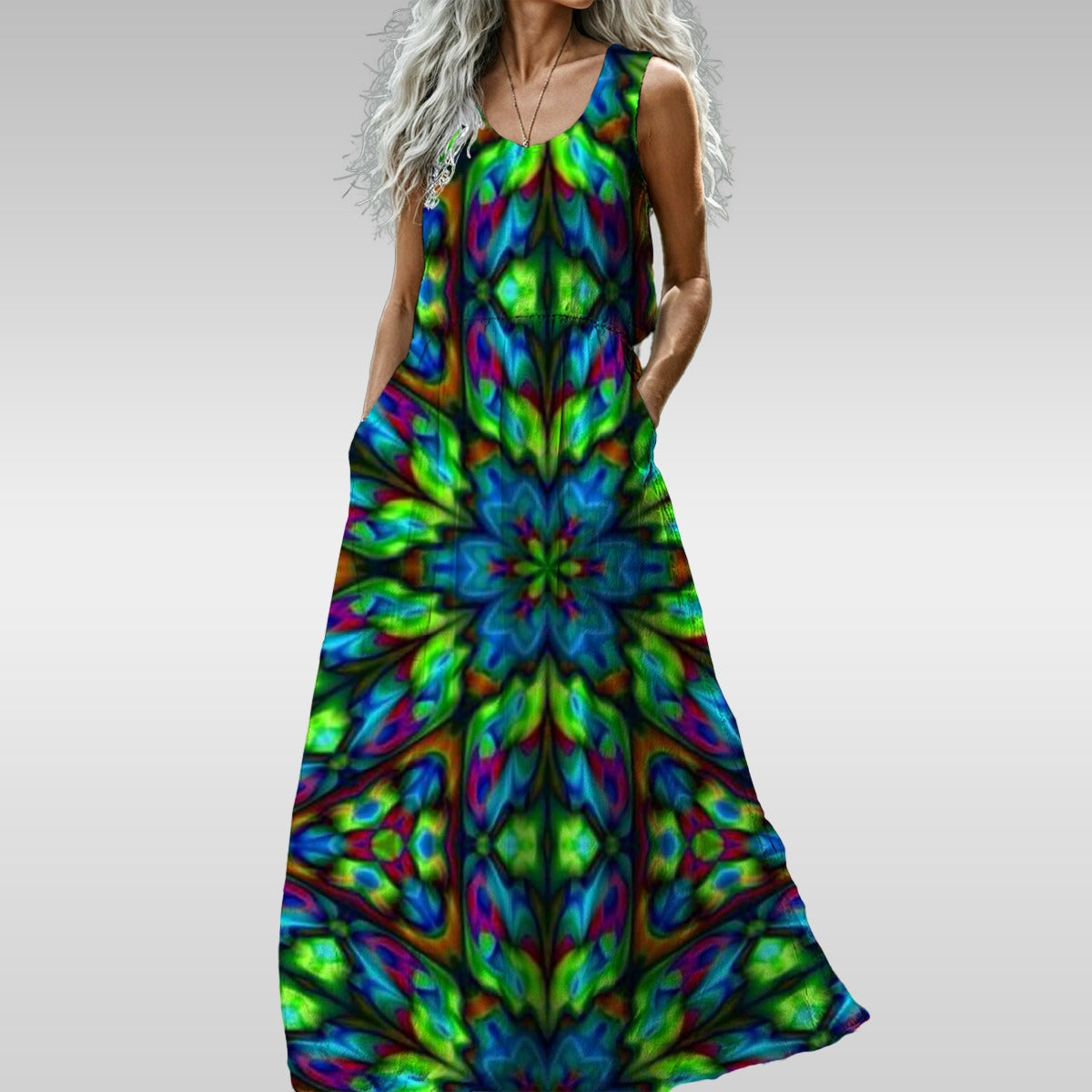 Blue and Green Kaleidoscope All-Over Print Women’s Sleeveless Maxi Dress