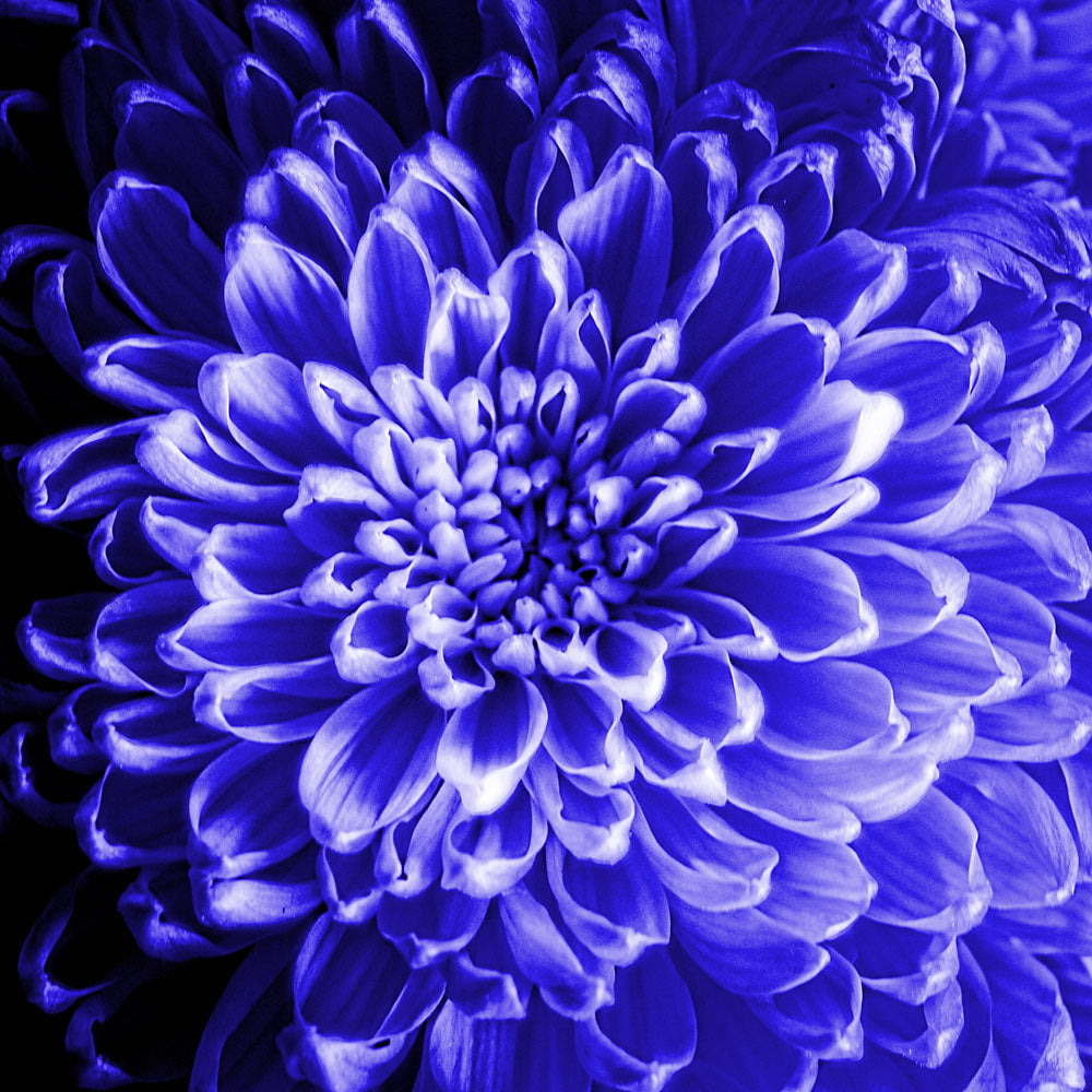 Blue tinted chrysanthemum flower photograph. DSLR.