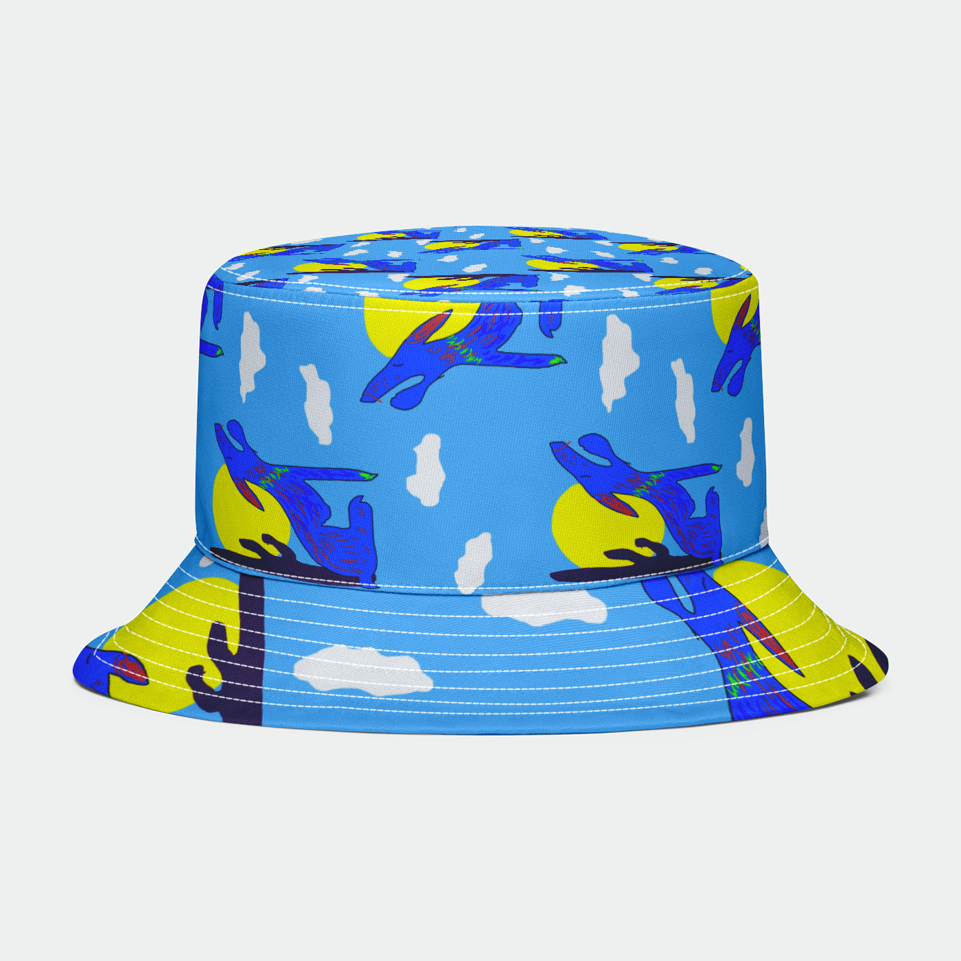 Blue Coyote Pattern Bucket Hat