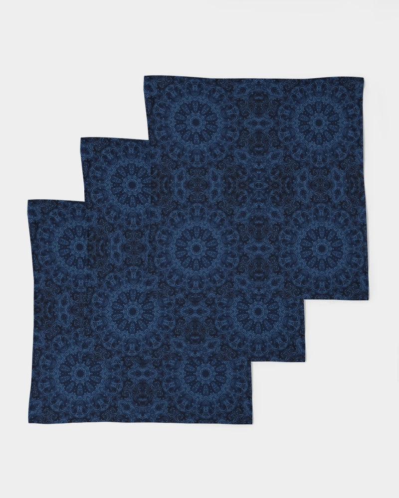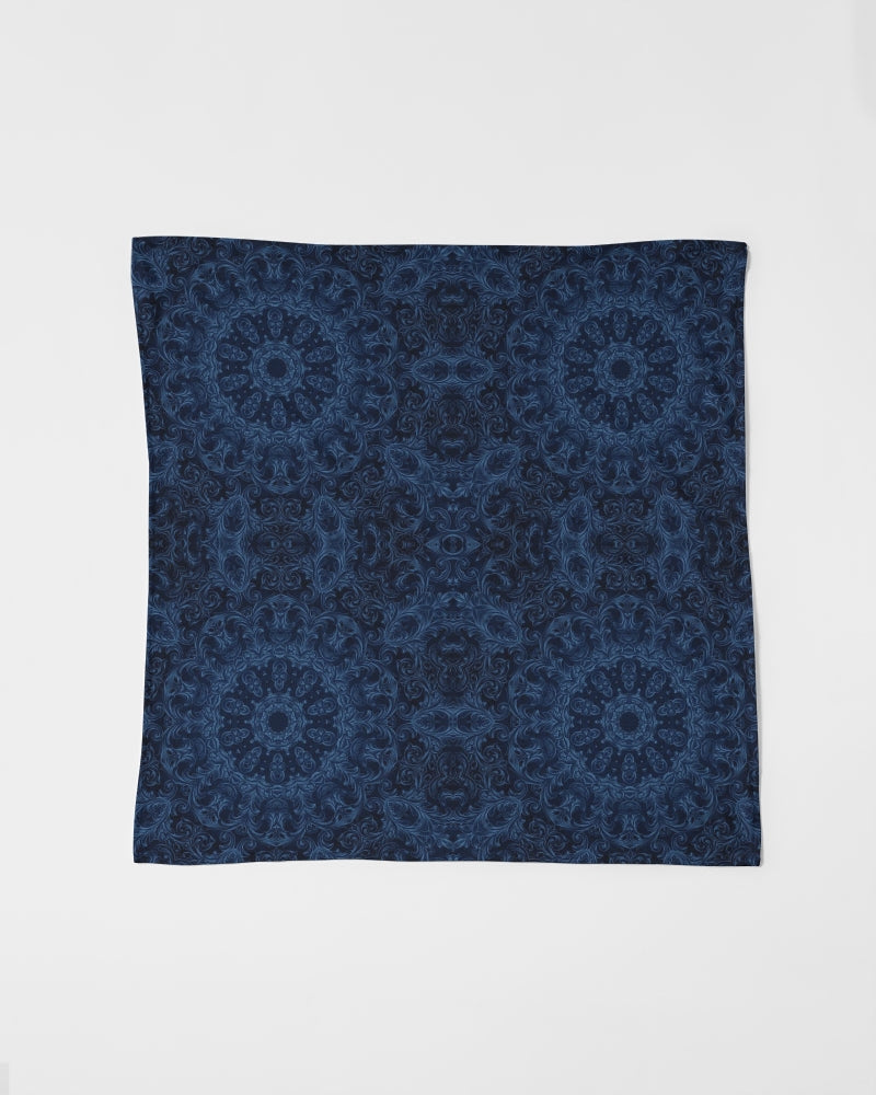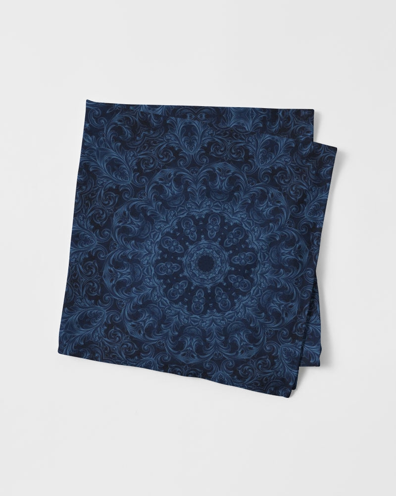 About The ArtBlue Faux Velvet Kaleidoscope Blue faux velvet kaleidoscope. Product DetailsEnhance your style with our versatile Bandana! Made from a soft stretchy jersey, it is multi-functional, comfortable and provides ultraviolet protection. Use it as a headband to style your hair, wear it as a pocket square, neck tie, or face covering.