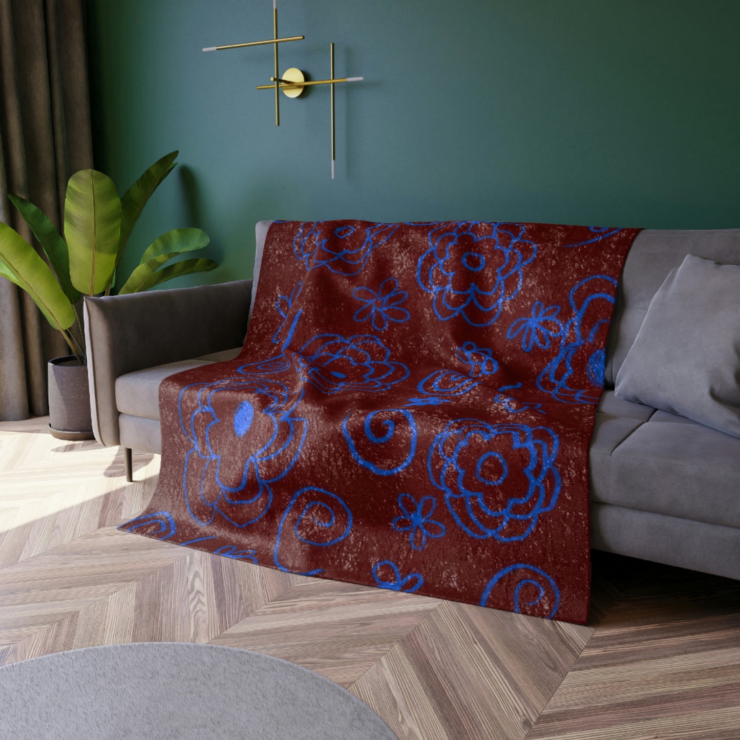 Super soft, super comfy—this crushed velvet blanket with an original custom design will be the perfect addition to the living room couch. It's made from high-quality, durable 100% polyester fabric with zig-zag stitches on its edges.