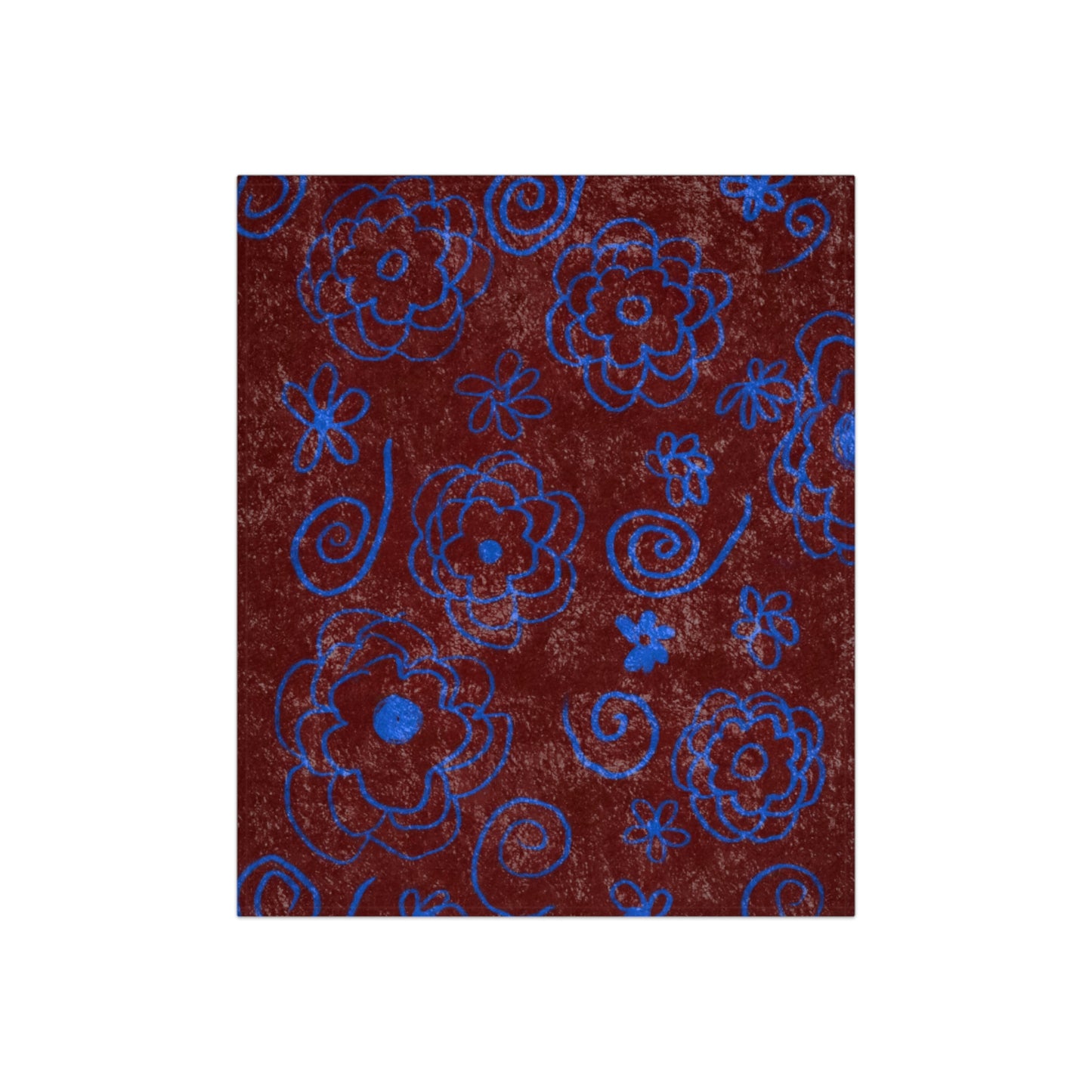 Blue Flower Drawing Crushed Velvet Blanket