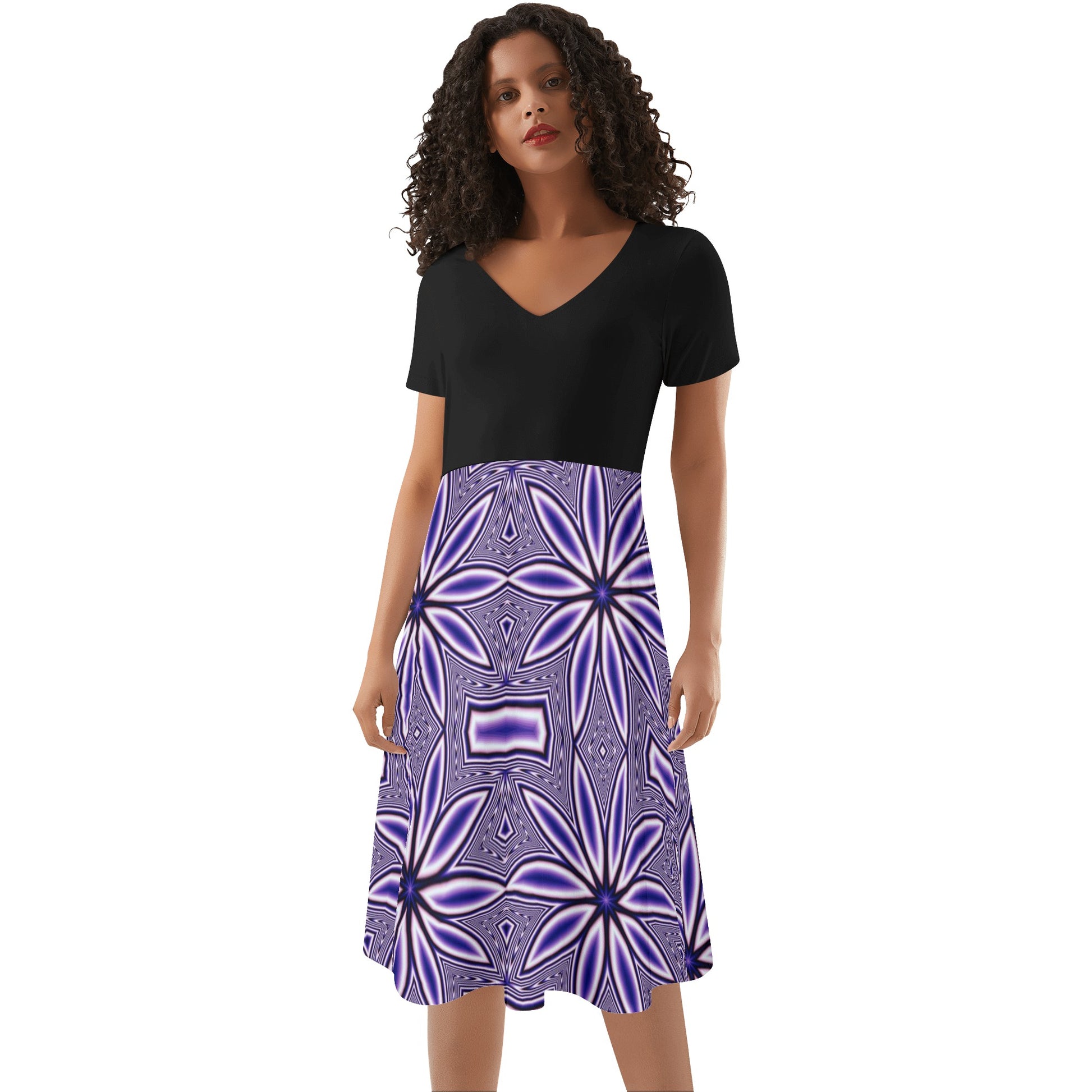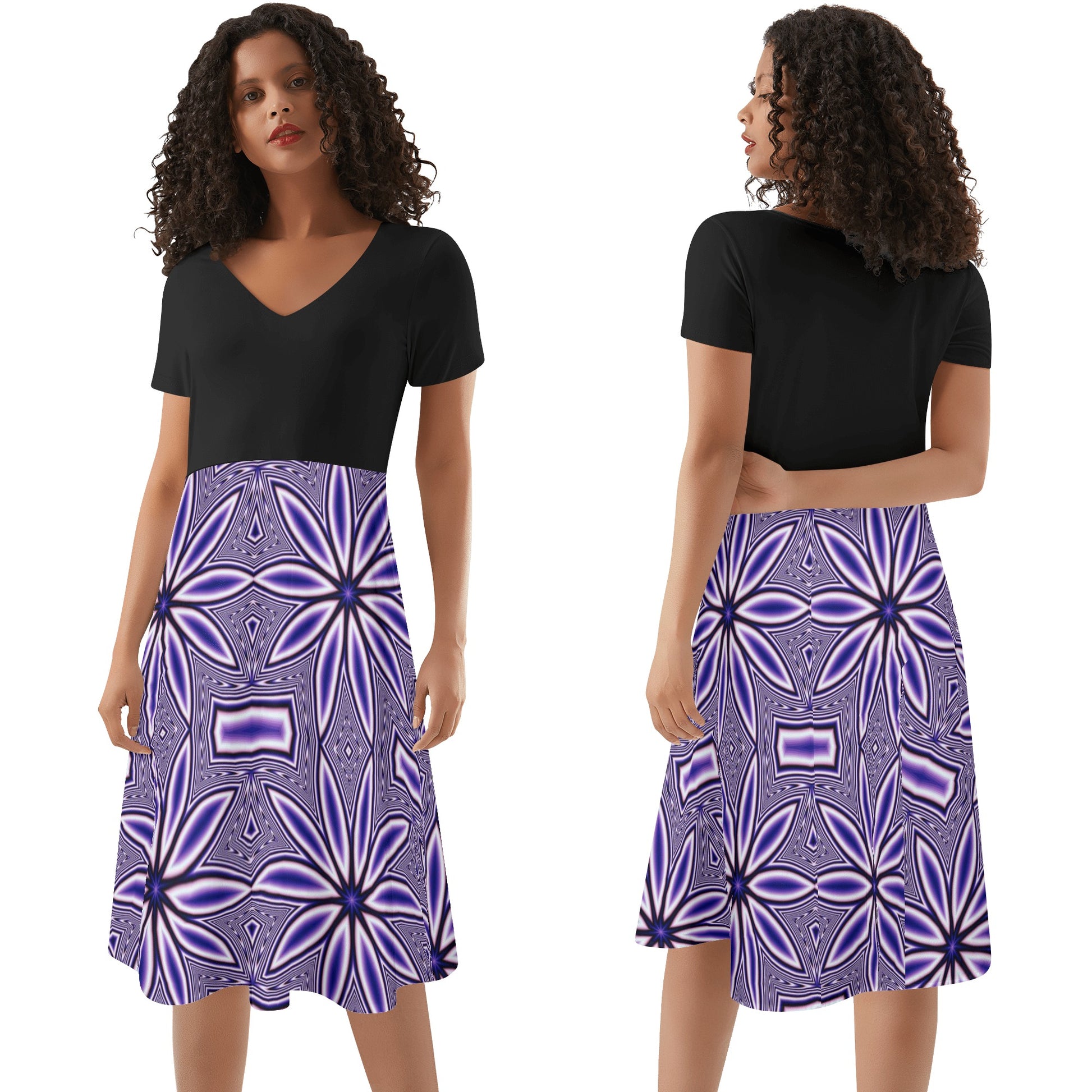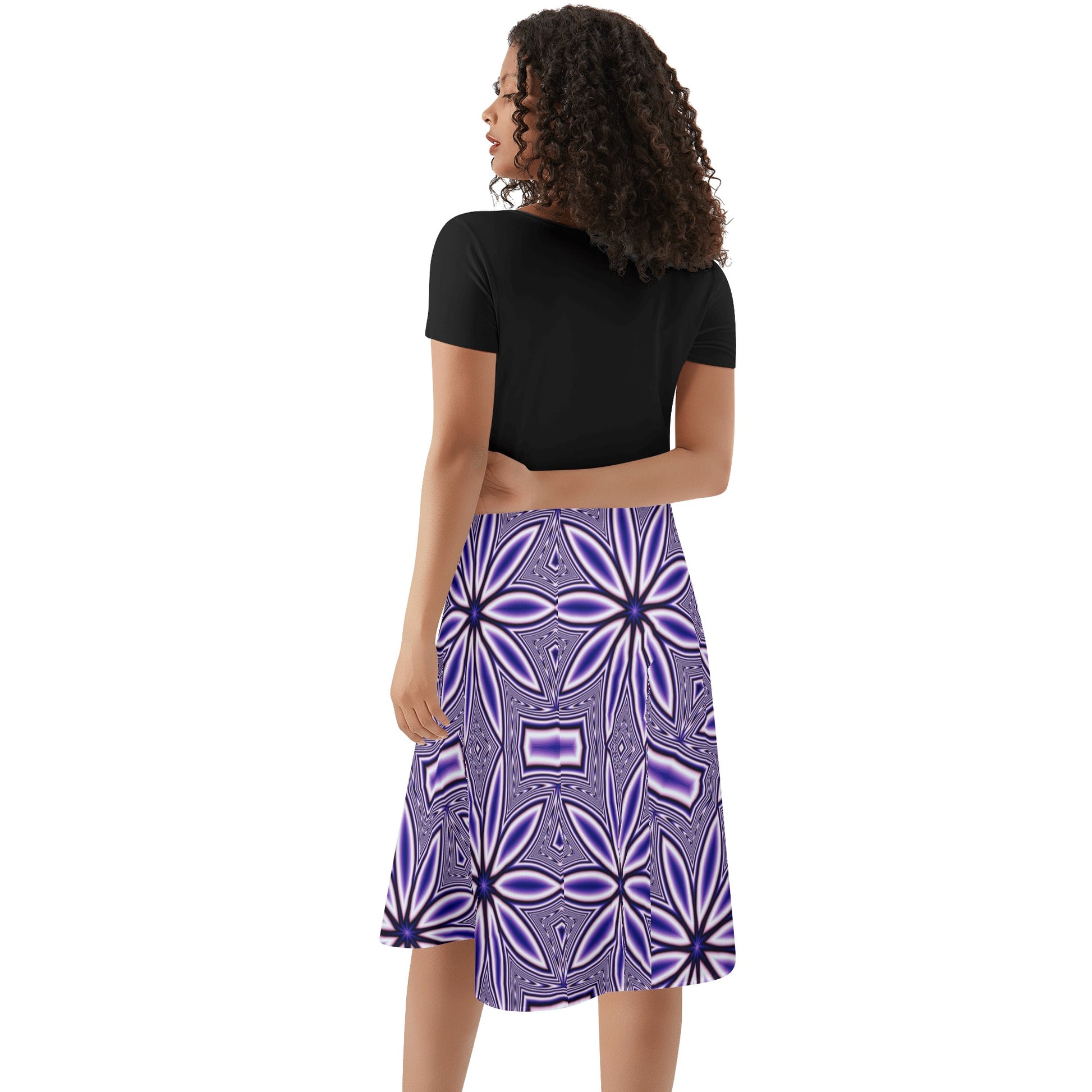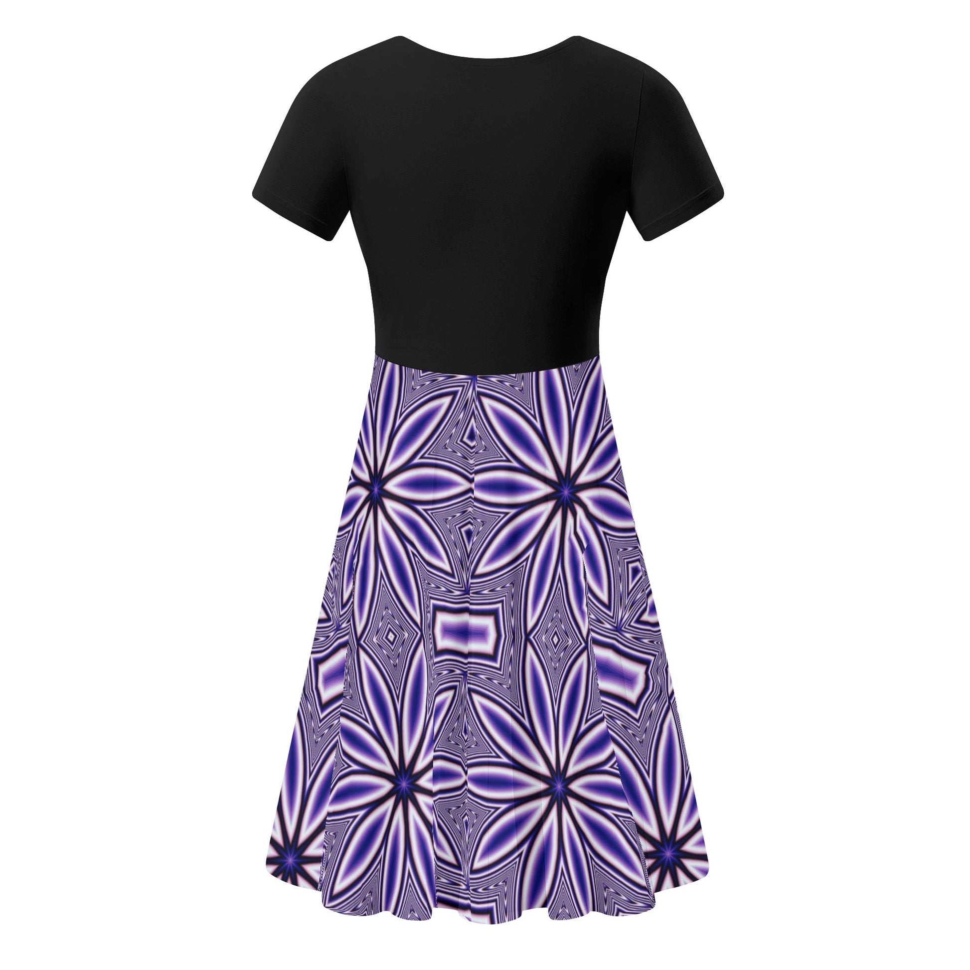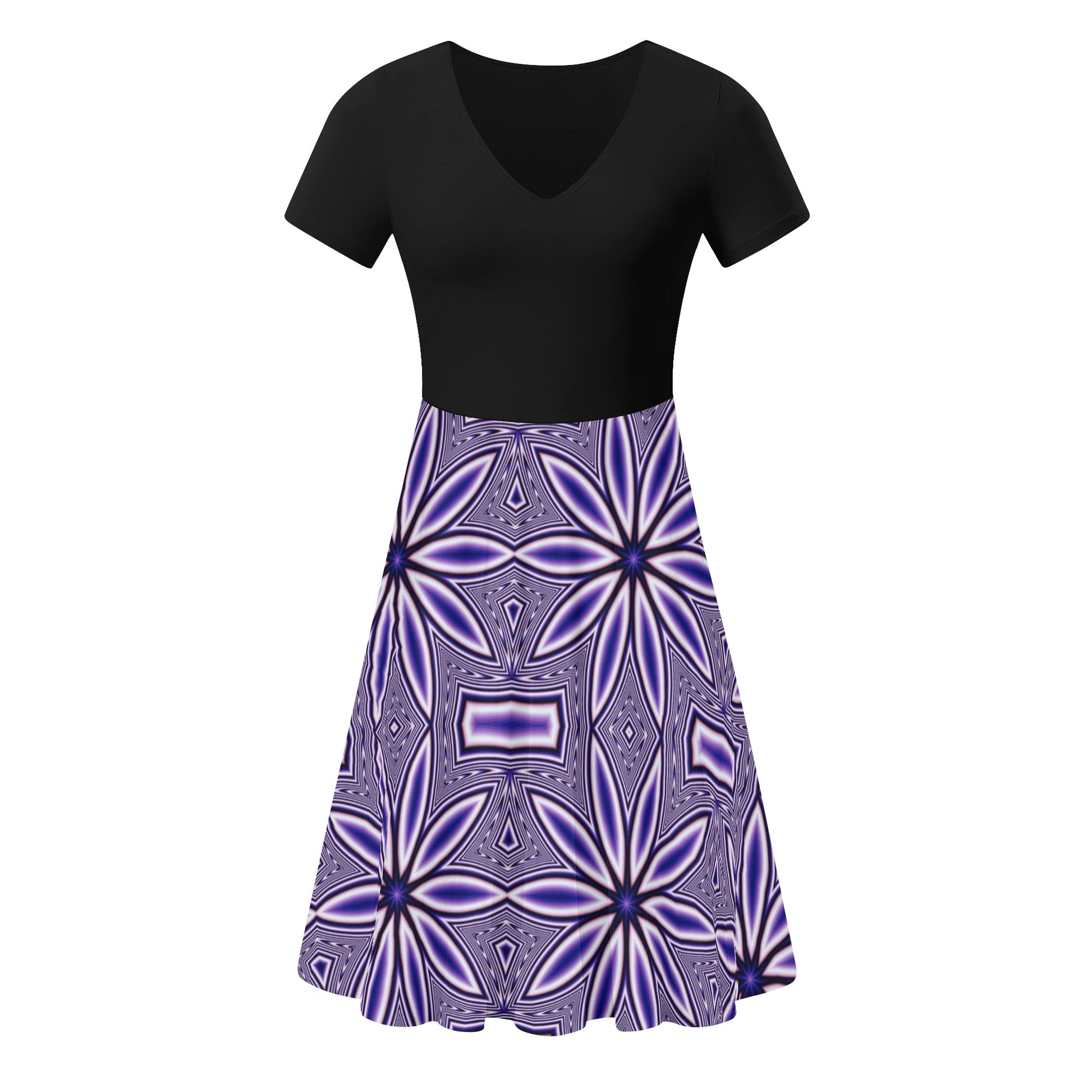 Blue Flower Kaleidoscope Womens Black Ruffle Summer Dress