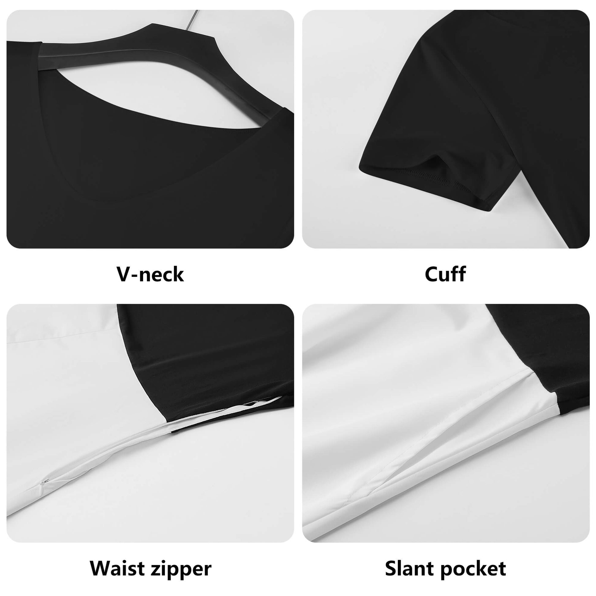 * Constructed with V-neck and black top , ruffle bottom for customized