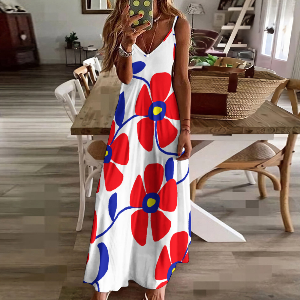 Custom All Over Print Women's Summer Fashion Slip Dress Long Skirts