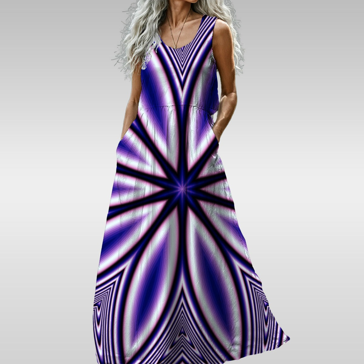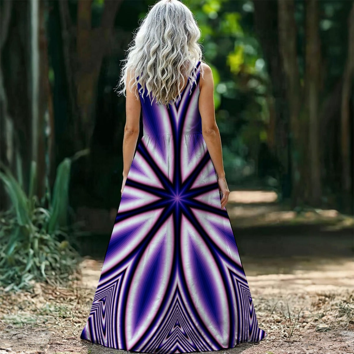 Blue Fractal Flower Kaleidoscope All-Over Print Women’s Sleeveless Maxi Dress