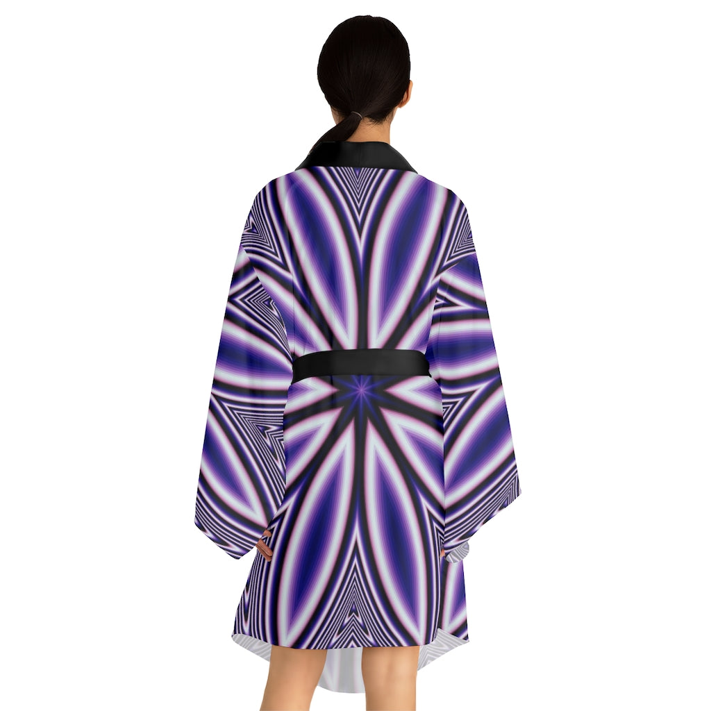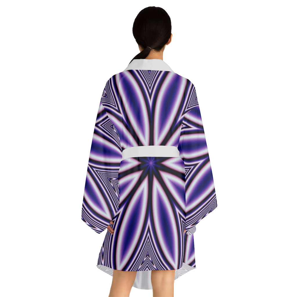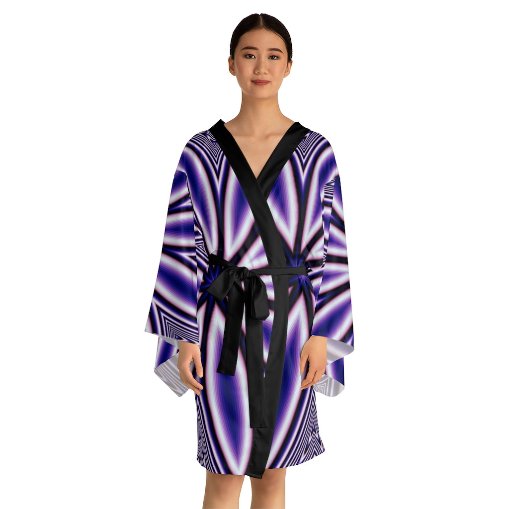 Blue Fractal Flower Kaleidoscope Long Sleeve Kimono Robe