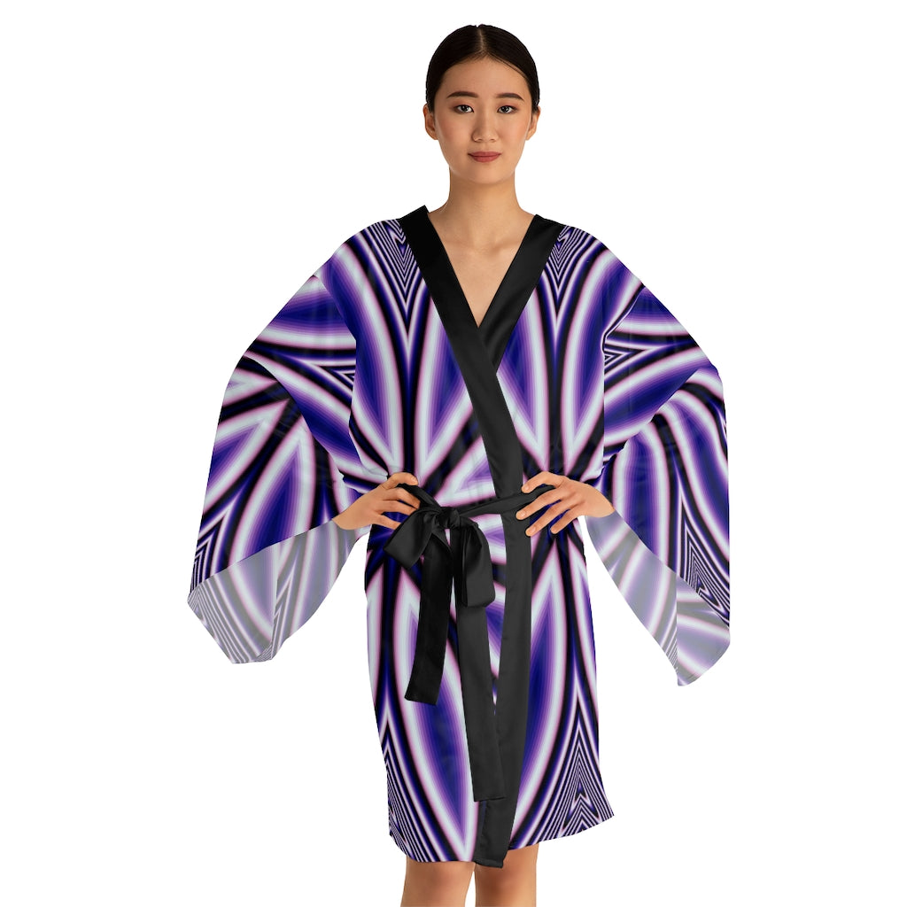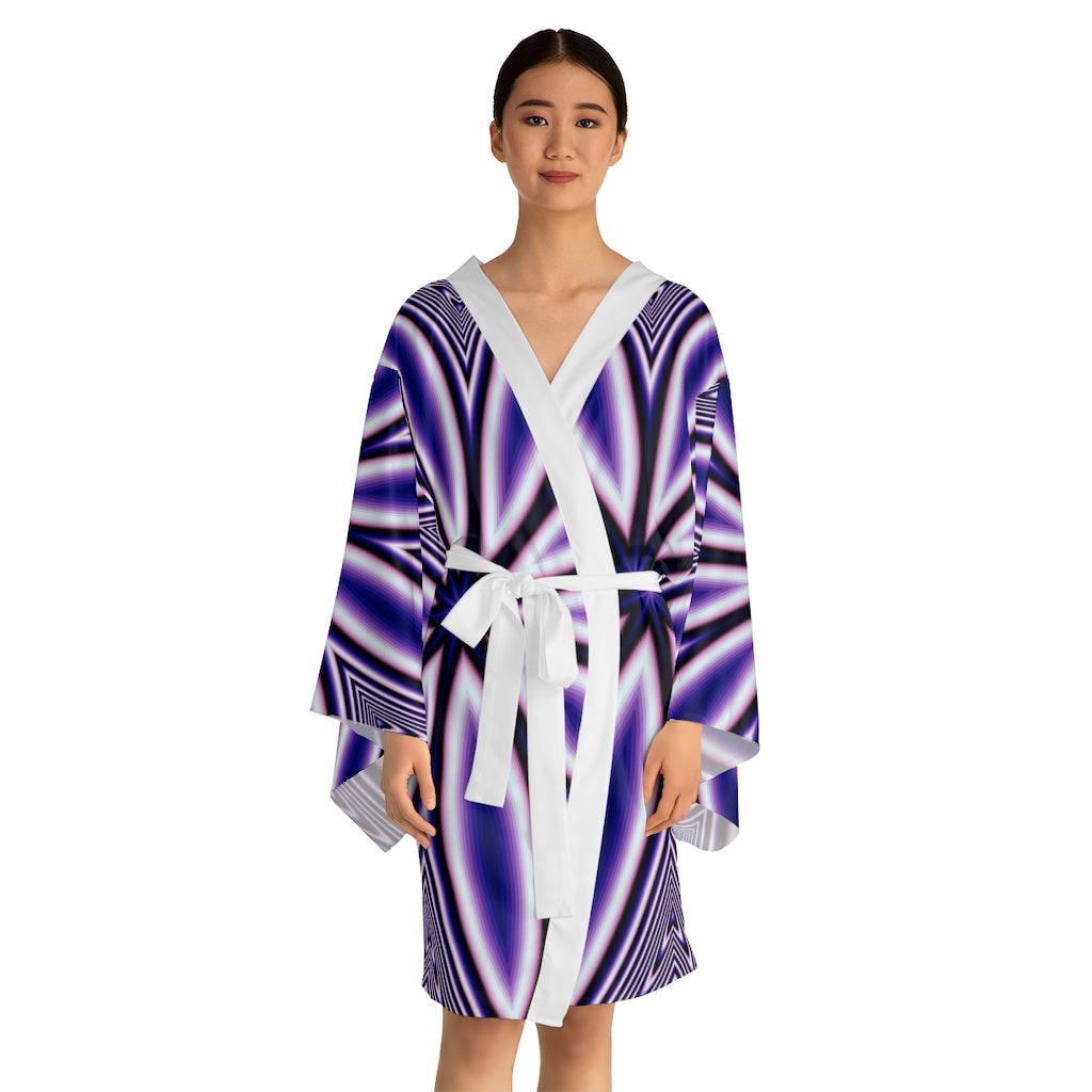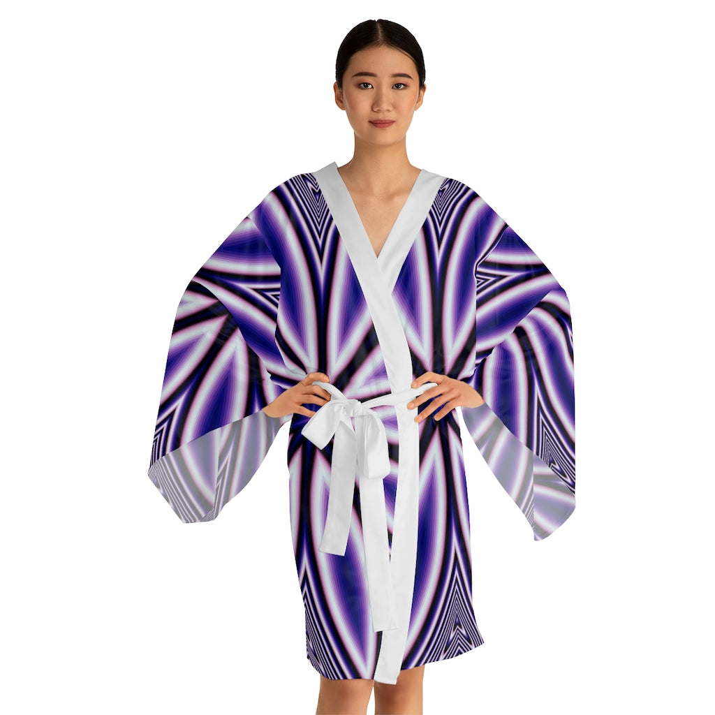 Blue Fractal Flower Kaleidoscope Long Sleeve Kimono Robe