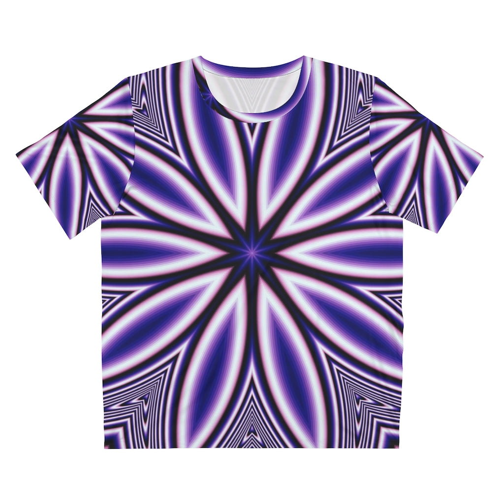 Blue Fractal Flower Kaleidoscope Unisex AOP Cut & Sew T-Shirt
