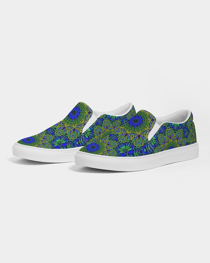 About The ArtBlue Green Celtic Kaleidoscope Blue green celtic kaleidoscope pattern. Product DetailsYour classic Women's Slip-On Canvas Shoe is great for day to night wear. Equipped with removable soft insoles and rubber outsoles, its easy on/off can be worn with all day comfort.