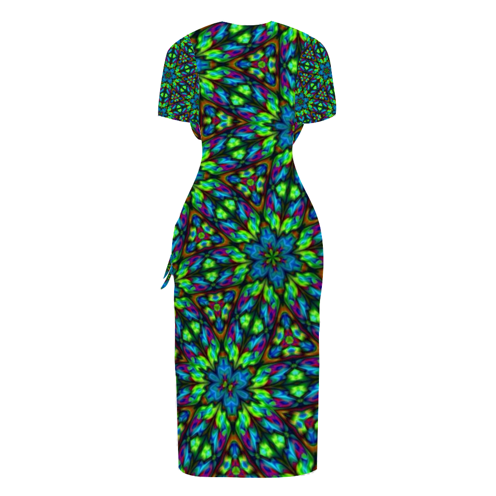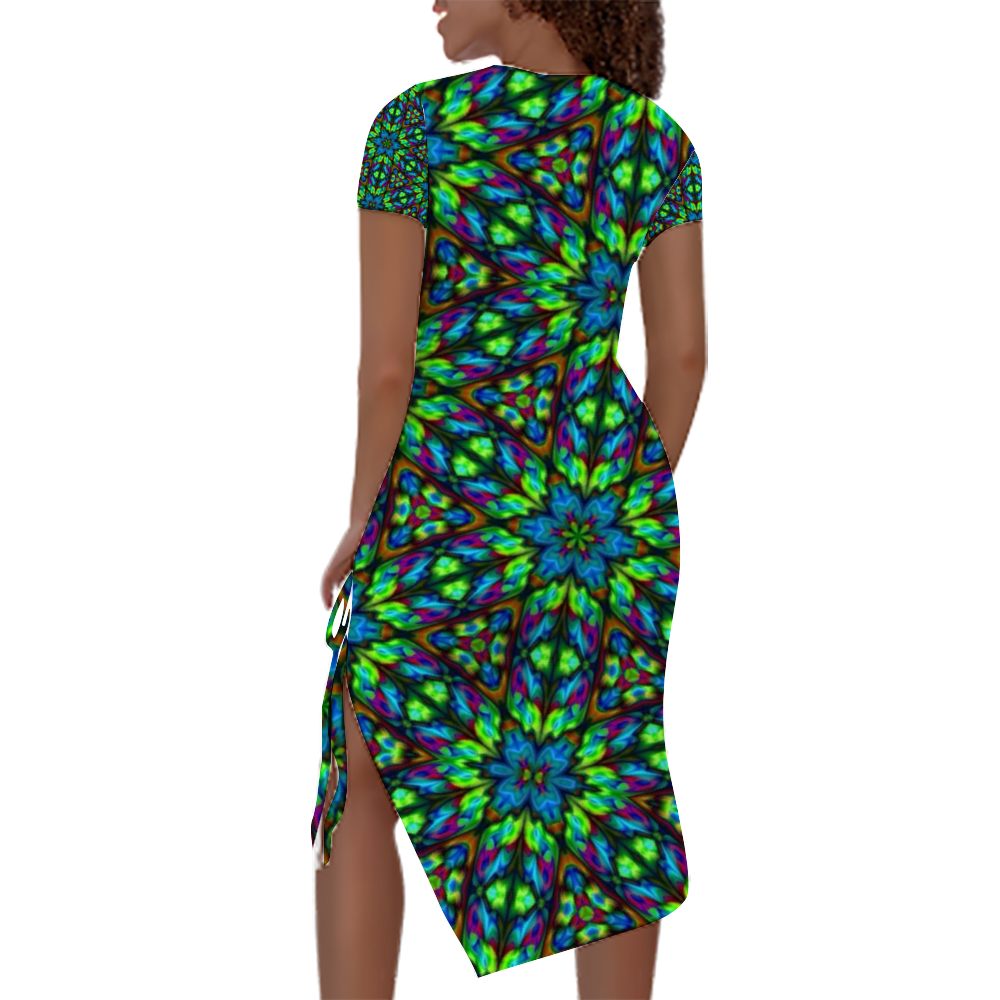 Blue Green Kaleidoscope Custom Women's Split Dress Summer Stylish Short Sleeve Dress