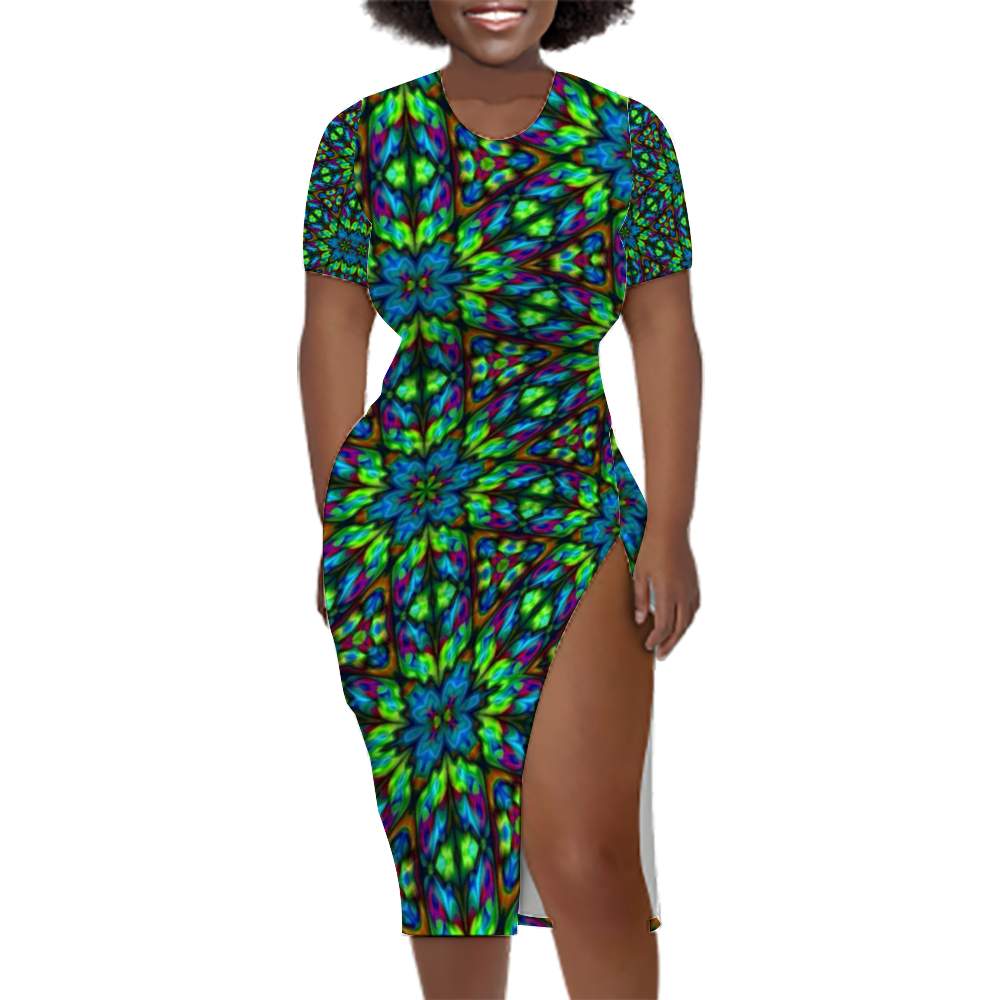 Custom Women's Split Dress Summer Stylish Short Sleeve Dress