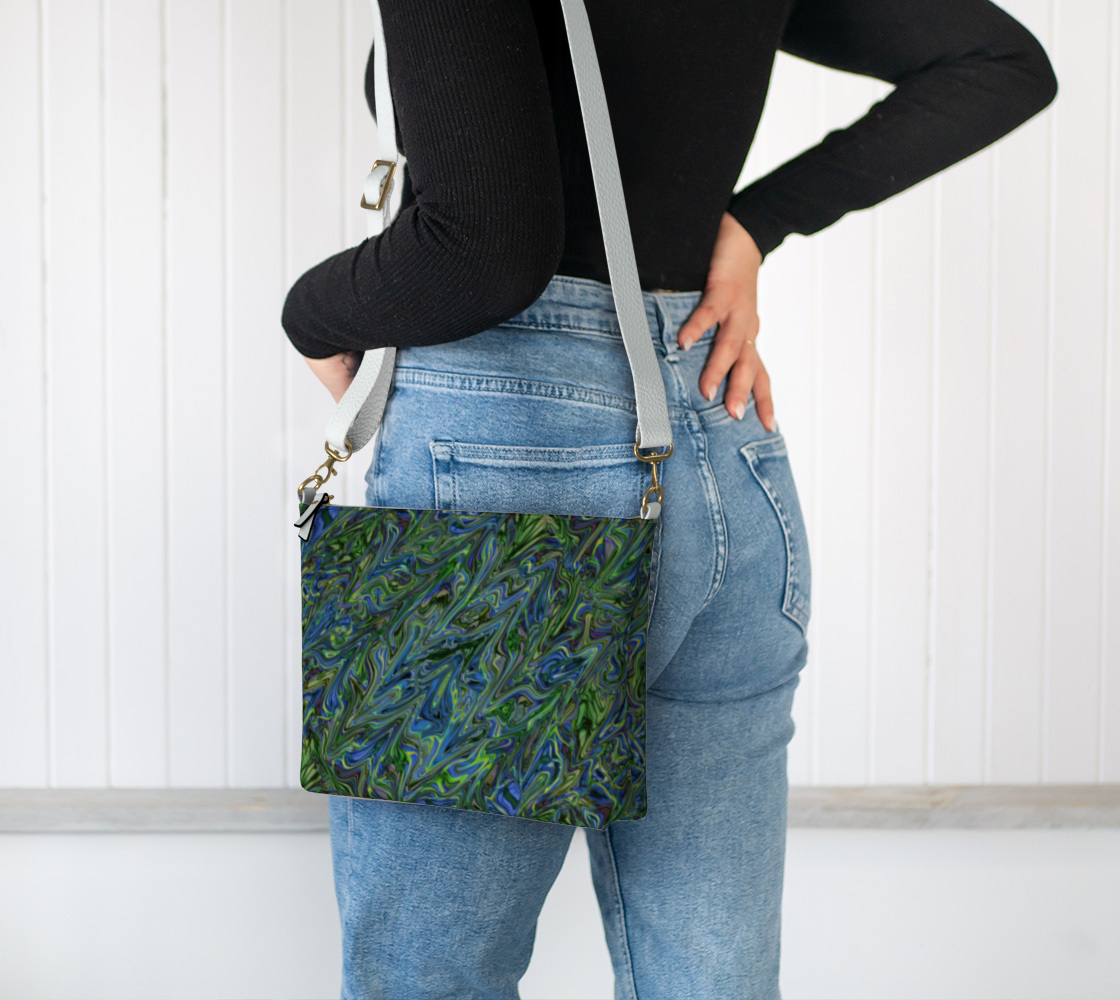 Blue Green Liquid Marbling Vegan Crossbody Purse