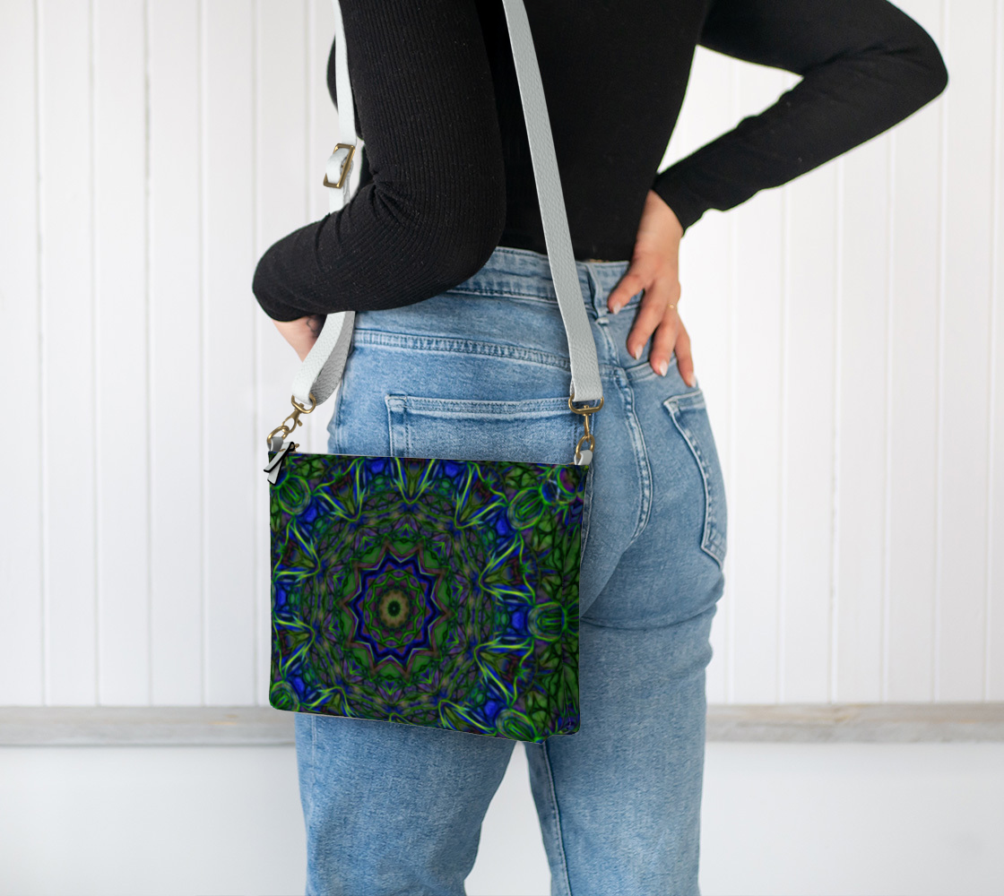 Blue Green Ribbon Kaleidoscope Vegan Crossbody Purse