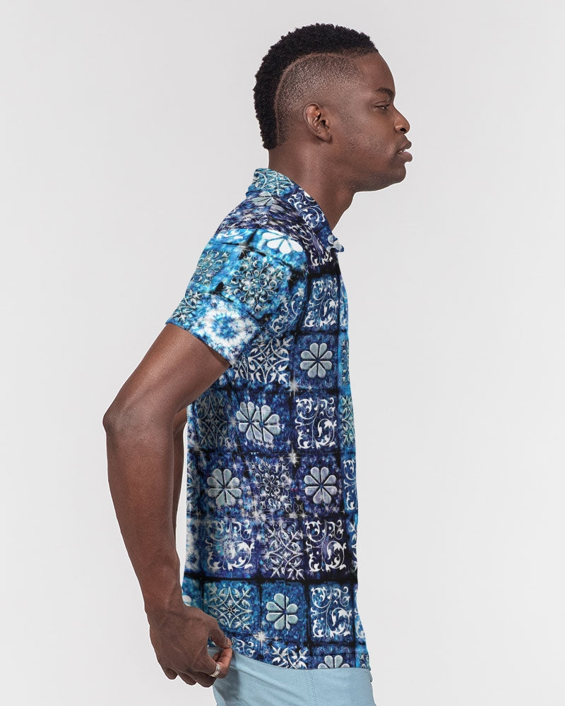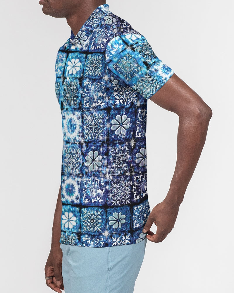 Blue Ice Crystals Motif Men's All-Over Print Slim Fit Short Sleeve Polo
