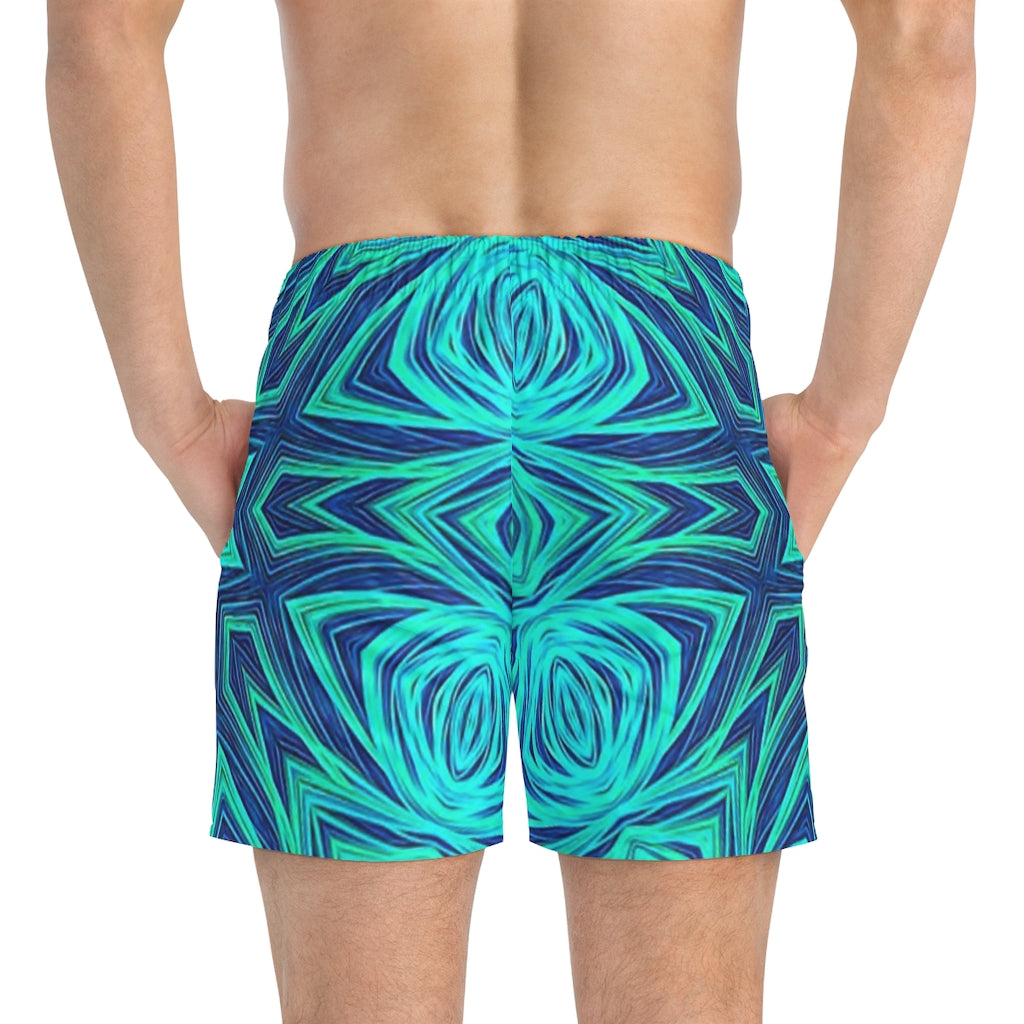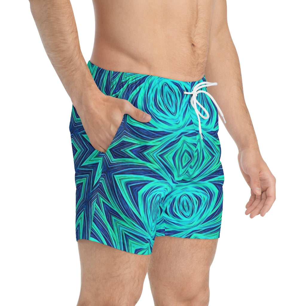 Blue Ice Fractal Kaleidoscope Swim Trunks
