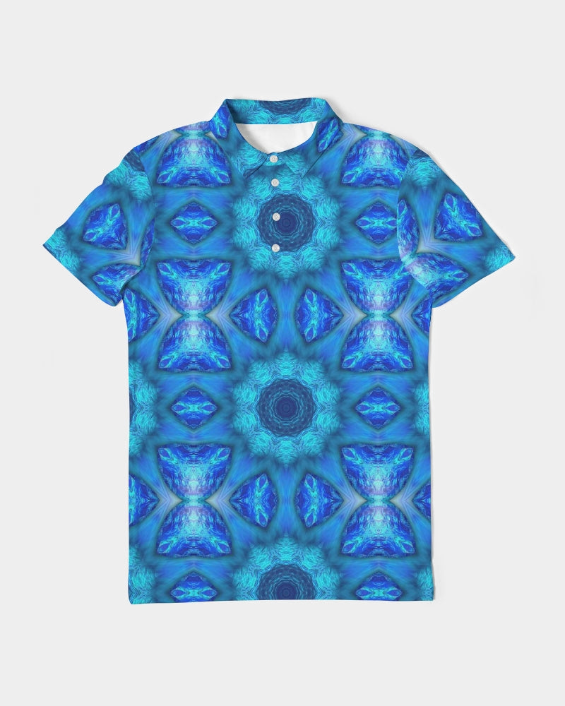 About The ArtBlue Ocean Kaleidoscope Blue watery kaleidoscope image. Product DetailsLook sharp in this versatile polo, perfect for business casual or a polished weekender outfit. Our Men's Slim Fit Short Sleeve Polo features soft, breathable fabric with a close cut torso, tailored to show your natural physique. This polo shirt tends to run small. We always recommend ordering samples to ensure the fit is as expected.