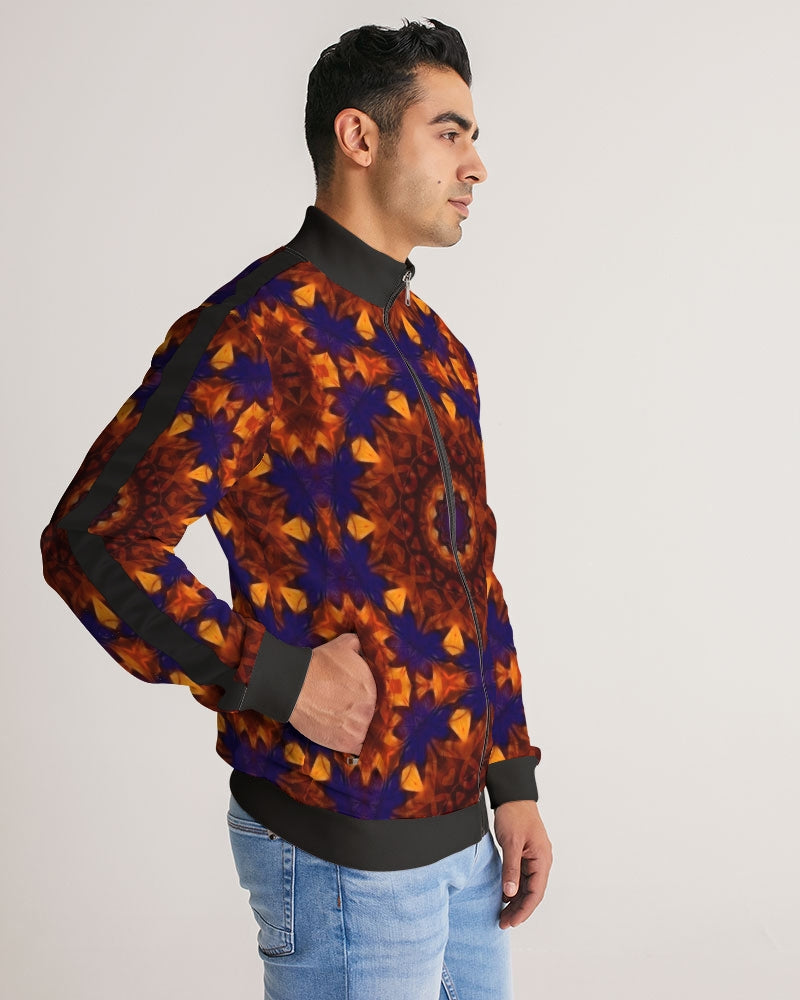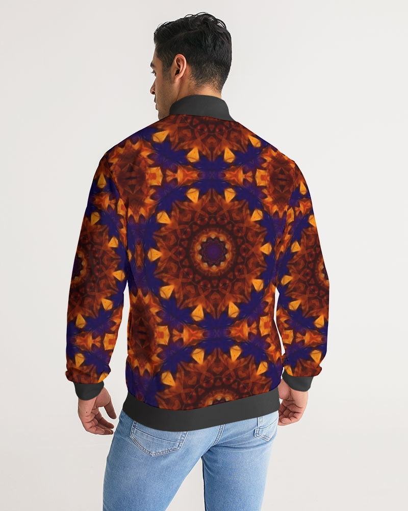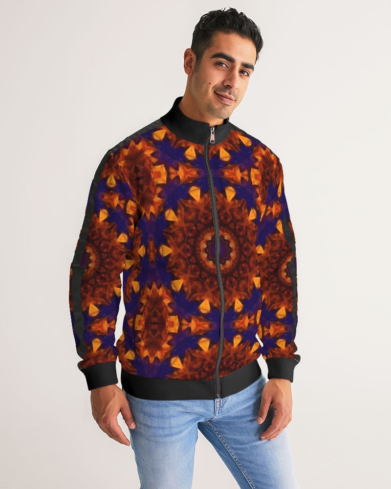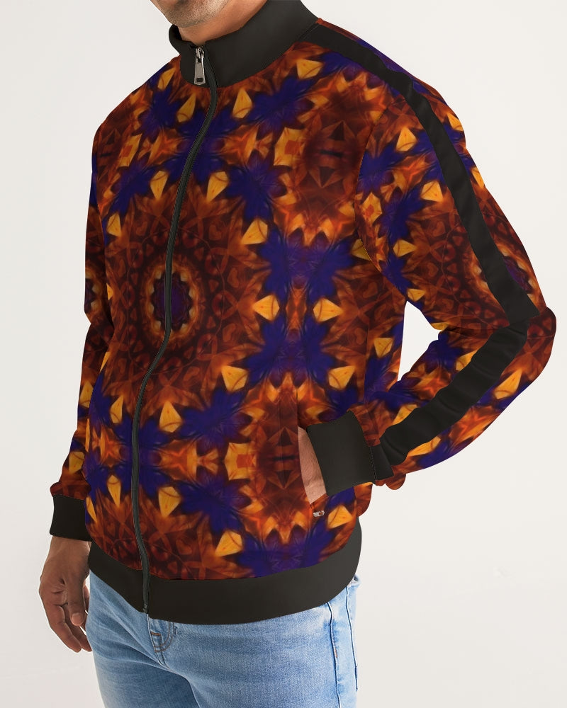 About The ArtBlue Orange Red Kaleidoscope Blue and orange kaleidoscope pattern. Product DetailsGet moving in comfort and style with our Men's Stripe-Sleeve Track Jacket. Its ribbed collar, cuffs and hem are the details to make it a casual go-to or top layer before getting in a workout.