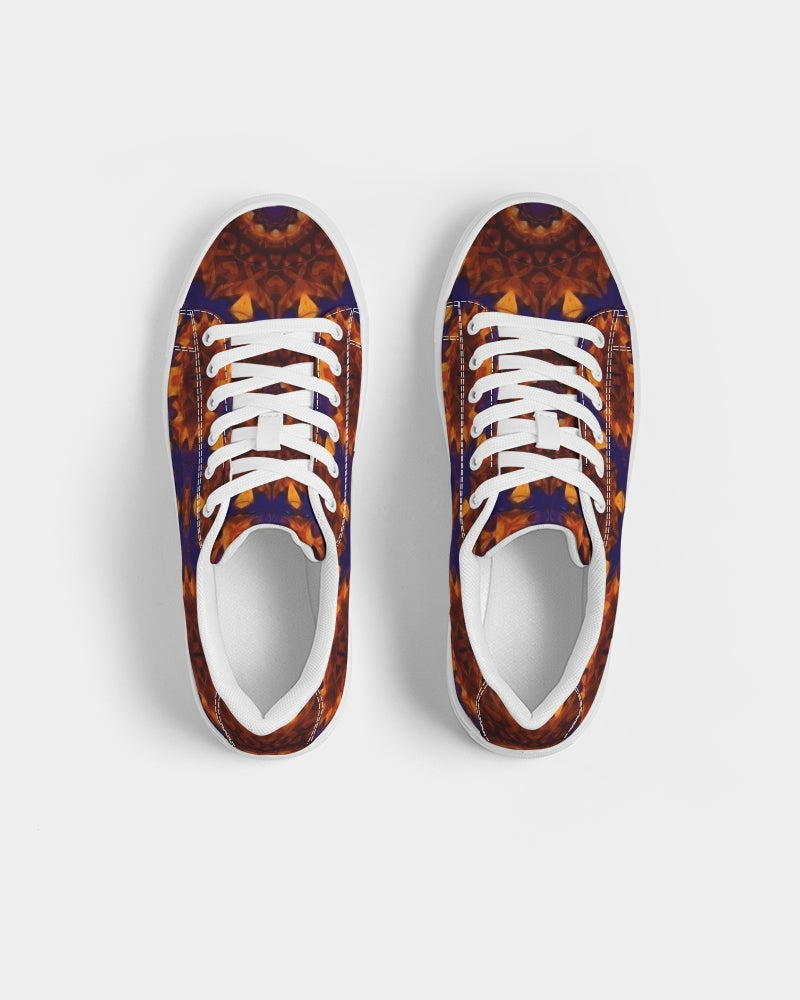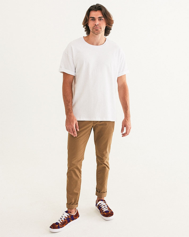 About The ArtBlue Orange Red Kaleidoscope Blue and orange kaleidoscope pattern. Product DetailsDesigned with comfort as top priority, our classic Men's Faux-Leather Sneaker is durable yet stylish. Its breathable lining and soft insole is made for all day wear and a timeless closet staple.