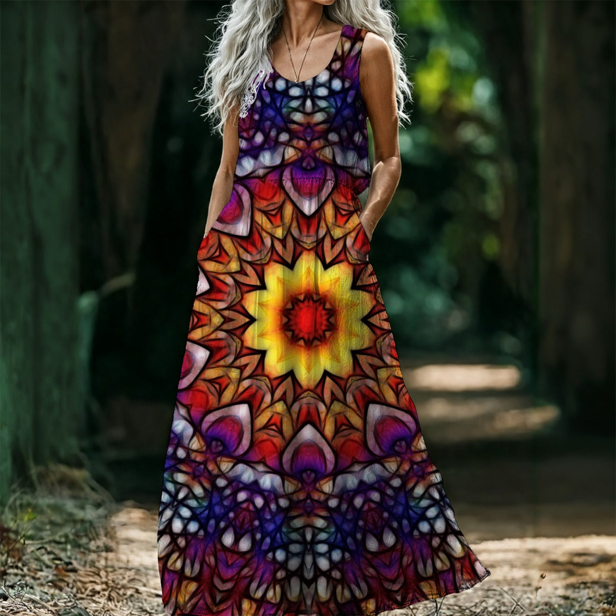 Blue Red Kaleidoscope All-Over Print Women’s Sleeveless Maxi Dress
