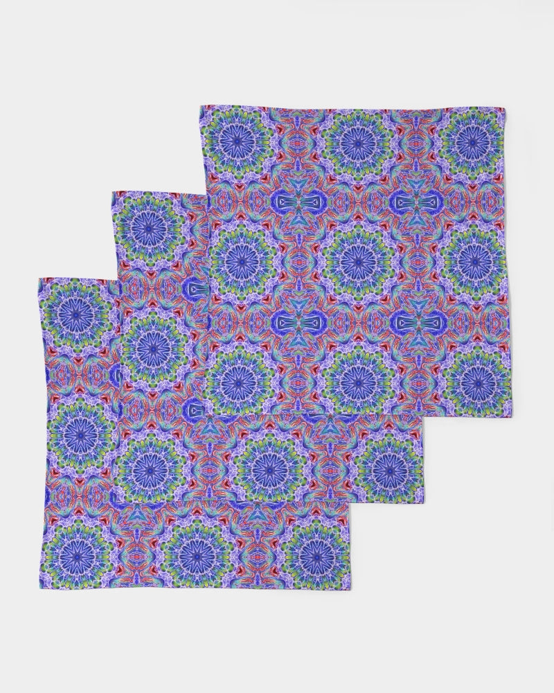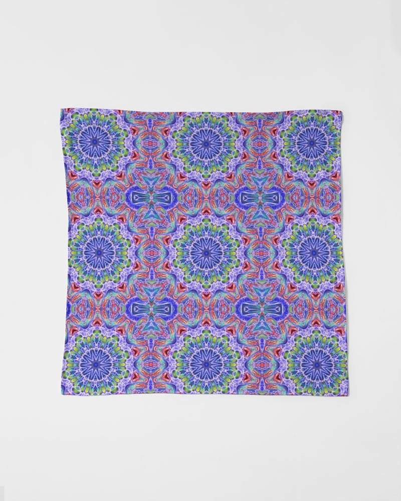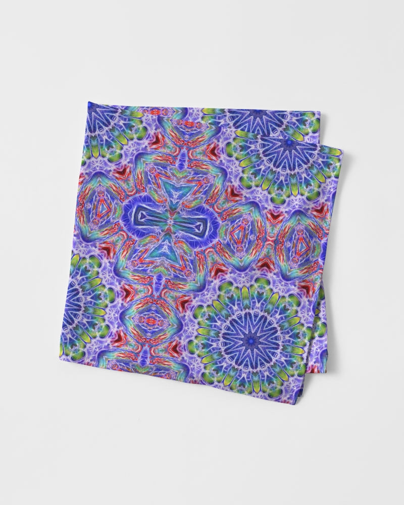 About The ArtBlue Red Kaleidoscope Blue and red kaleidoscope. Product DetailsEnhance your style with our versatile Bandana! Made from a soft stretchy jersey, it is multi-functional, comfortable and provides ultraviolet protection. Use it as a headband to style your hair, wear it as a pocket square, neck tie, or face covering.