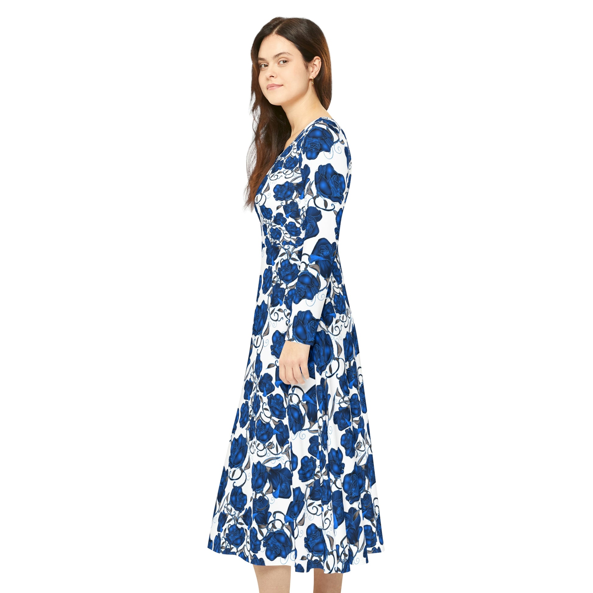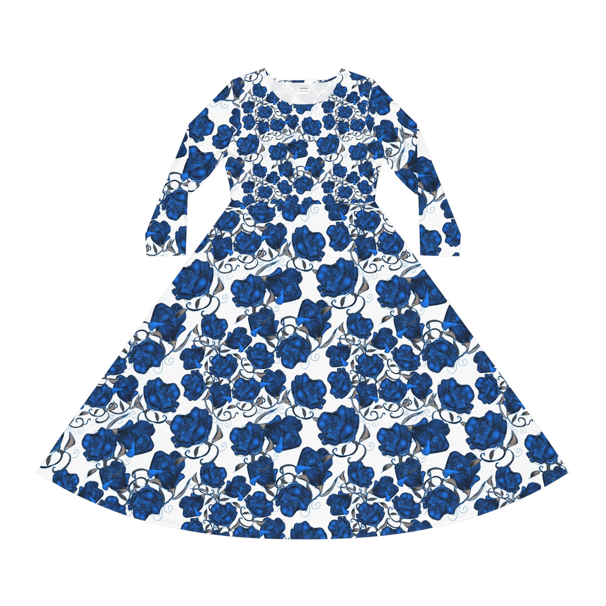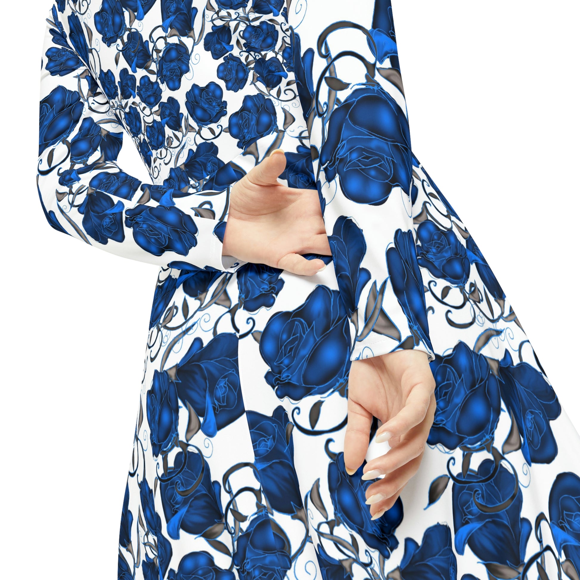 Blue Roses Women's Long Sleeve Dance Dress (AOP)