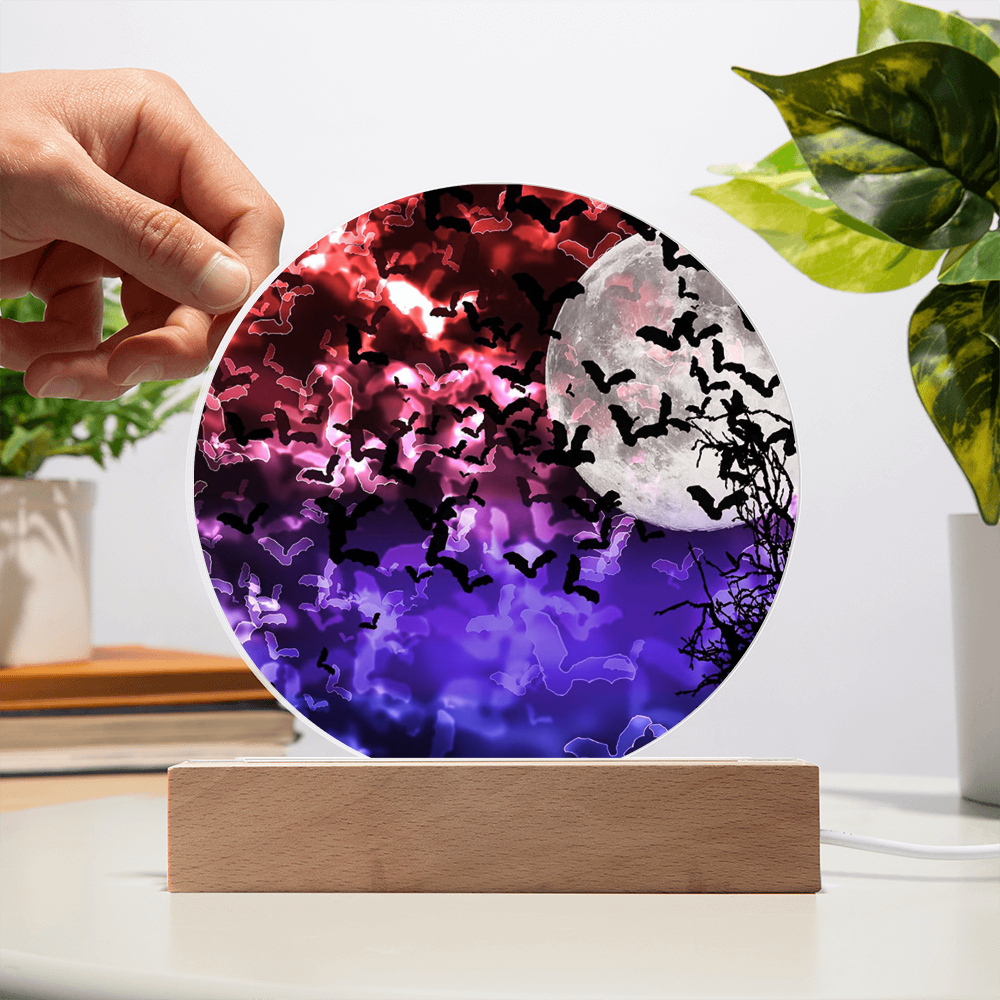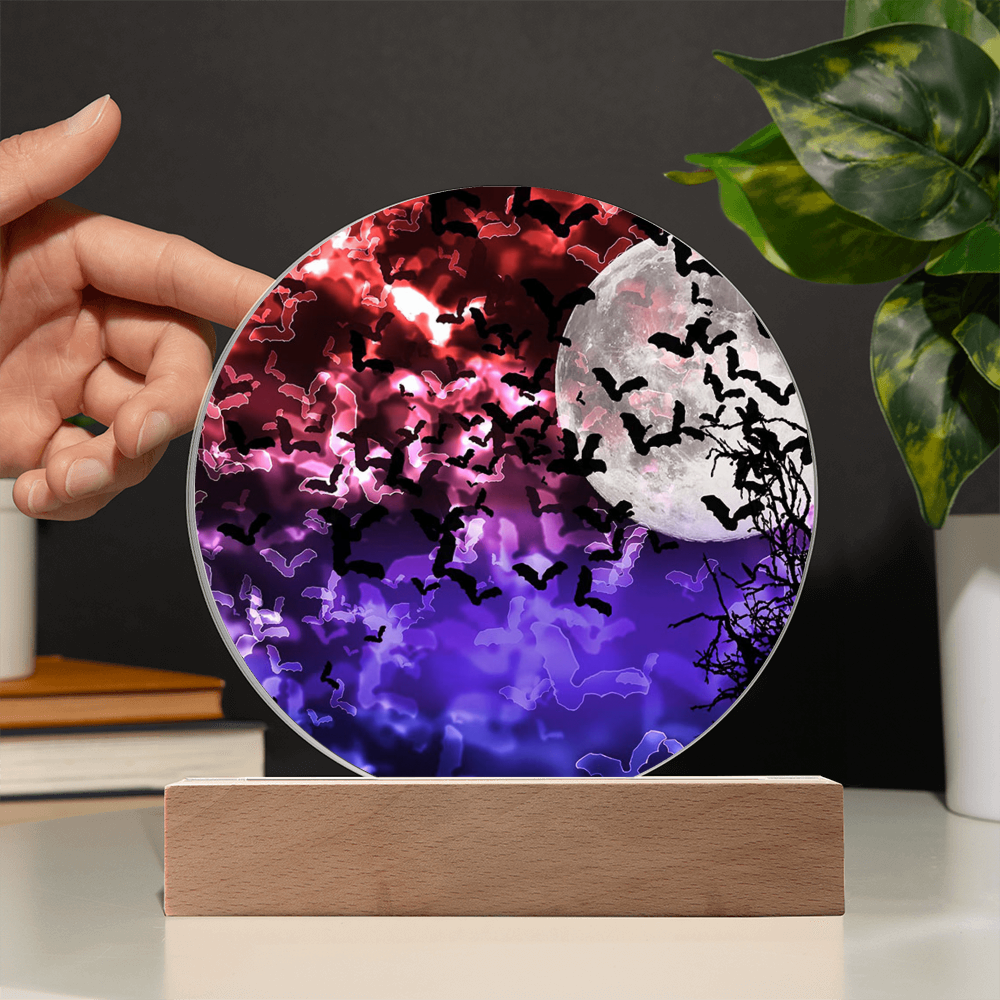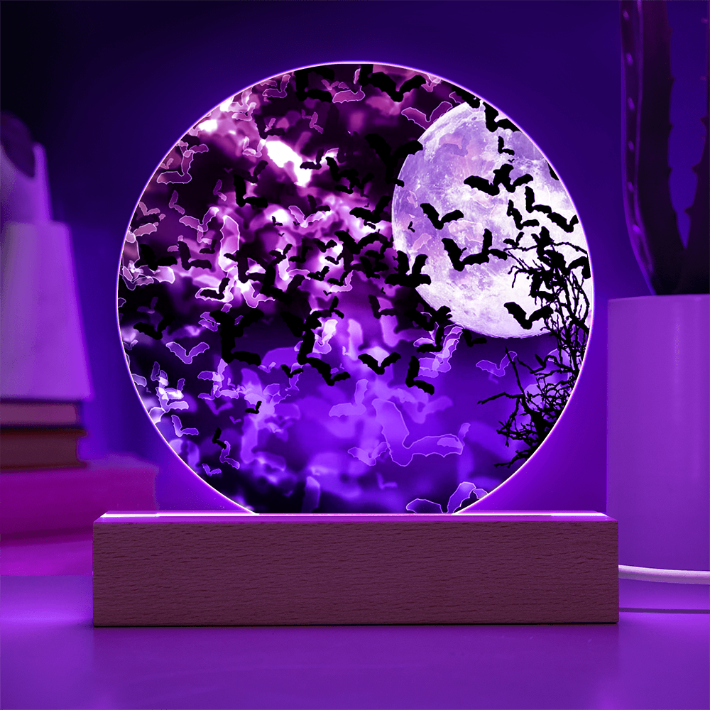 Your plaque will be crafted from premium acrylic with a professionally printed design for a polished look. It comes with a stylish wooden LED base, and you can choose between a USB plug-in option OR a cordless battery-operated option (requires 2 AAA batteries, not included). Both LED bases feature 7 vibrant colors, allowing the user to customize the lighting with various color changes and dynamic cycles.