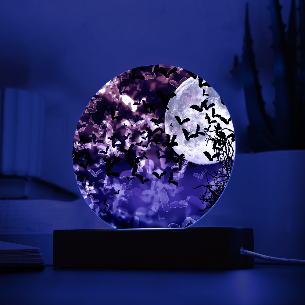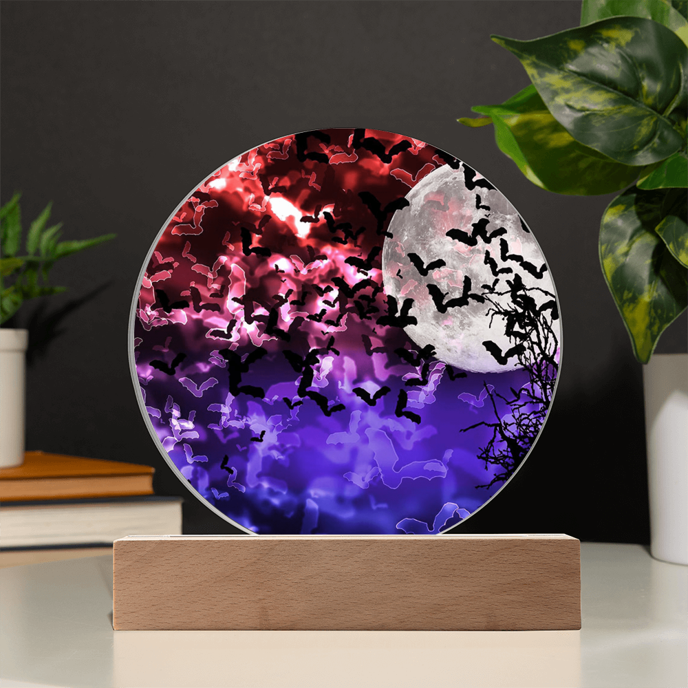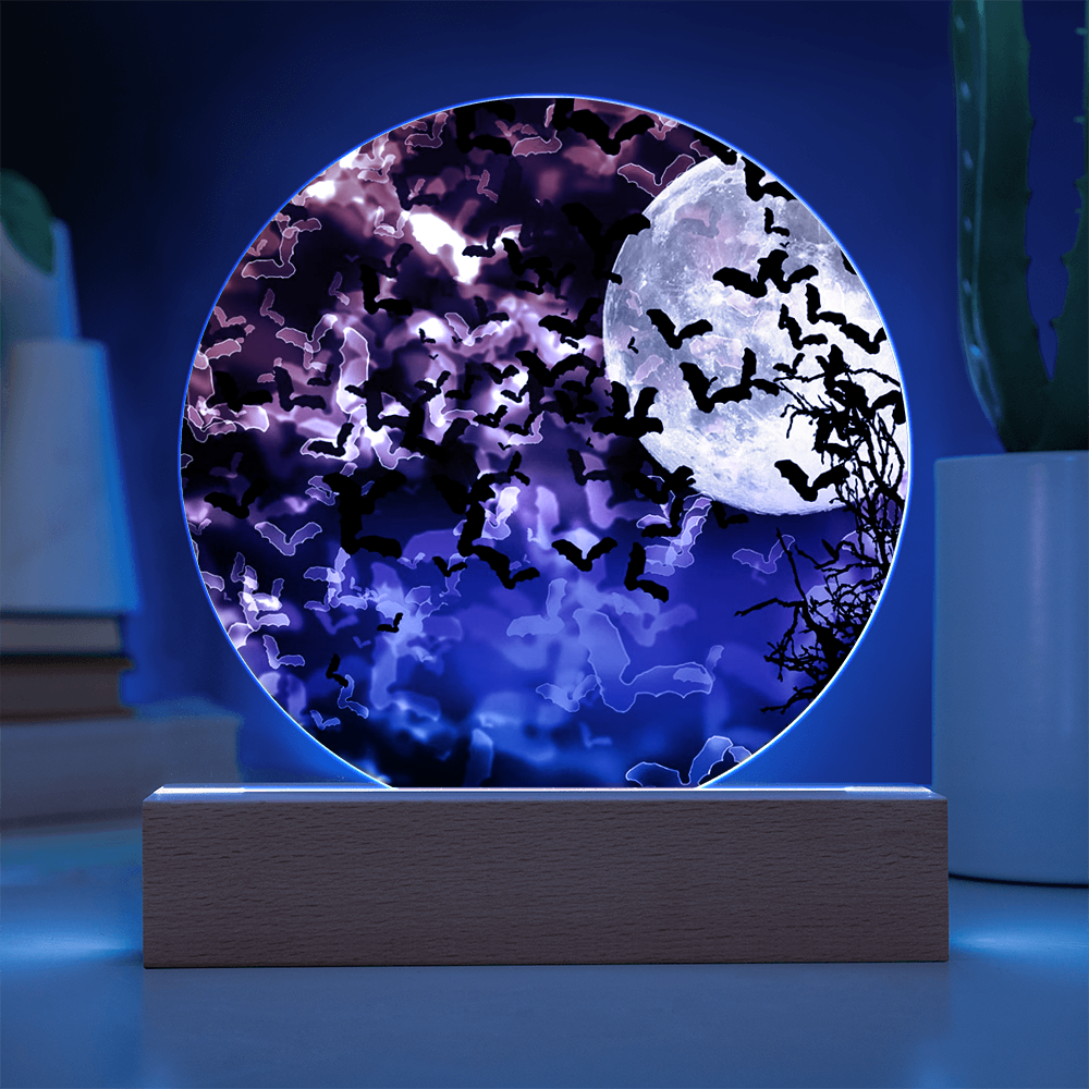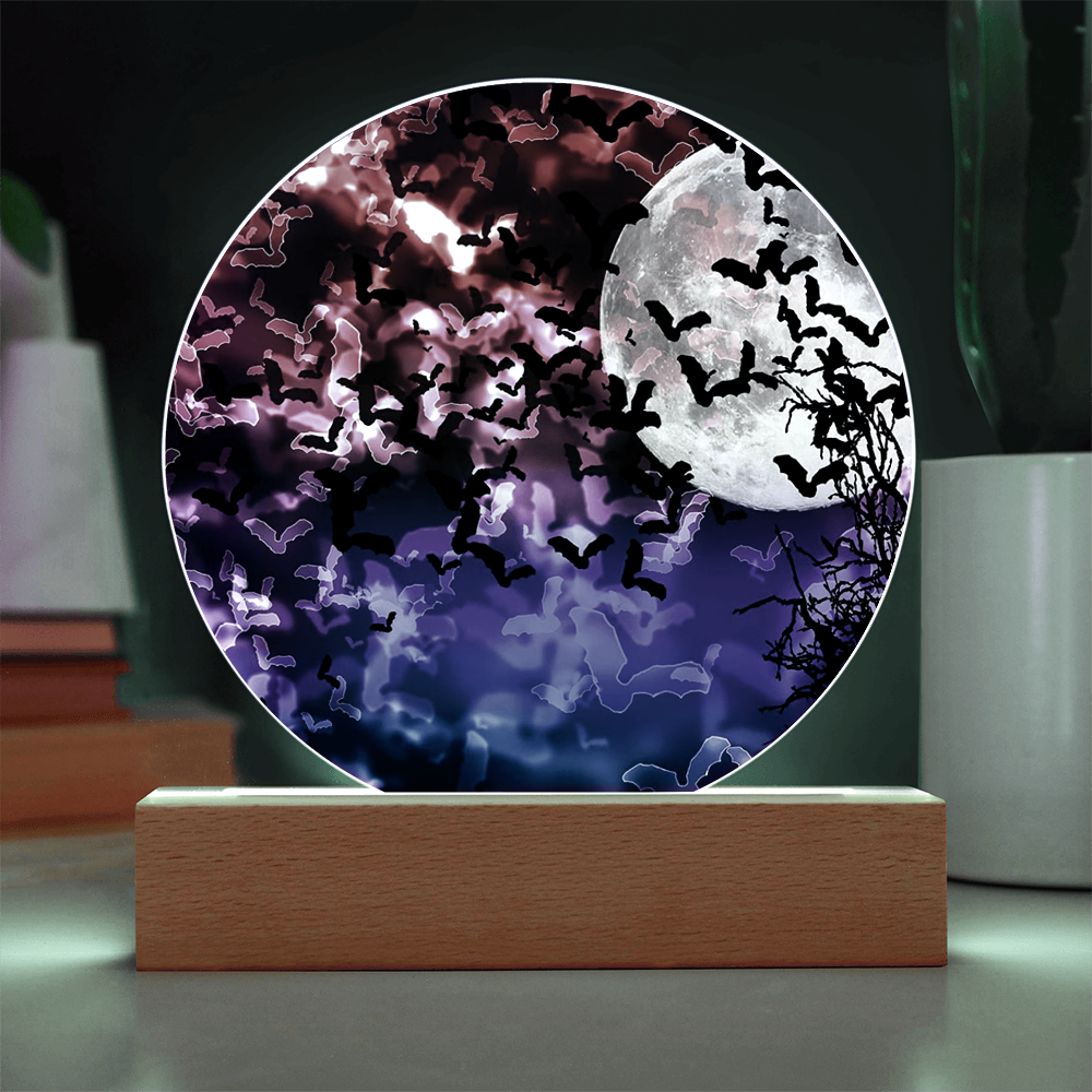 Your plaque will be crafted from premium acrylic with a professionally printed design for a polished look. It comes with a stylish wooden LED base, and you can choose between a USB plug-in option OR a cordless battery-operated option (requires 2 AAA batteries, not included). Both LED bases feature 7 vibrant colors, allowing the user to customize the lighting with various color changes and dynamic cycles.