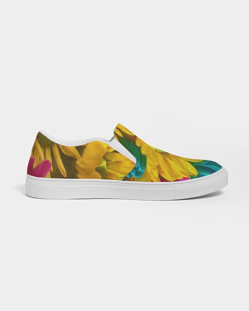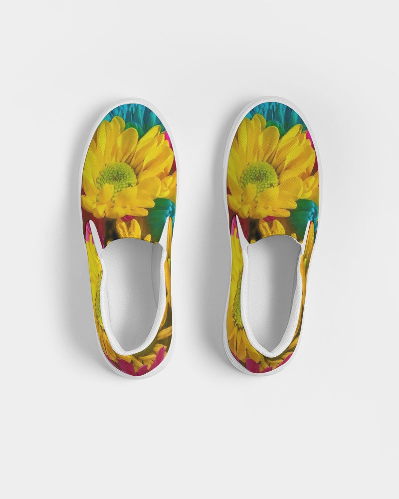 About The ArtBright Spring Daisies Daisies in pinks yellows and blues. Product DetailsYour classic Women's Slip-On Canvas Shoe is great for day to night wear. Equipped with removable soft insoles and rubber outsoles, its easy on/off can be worn with all day comfort.
