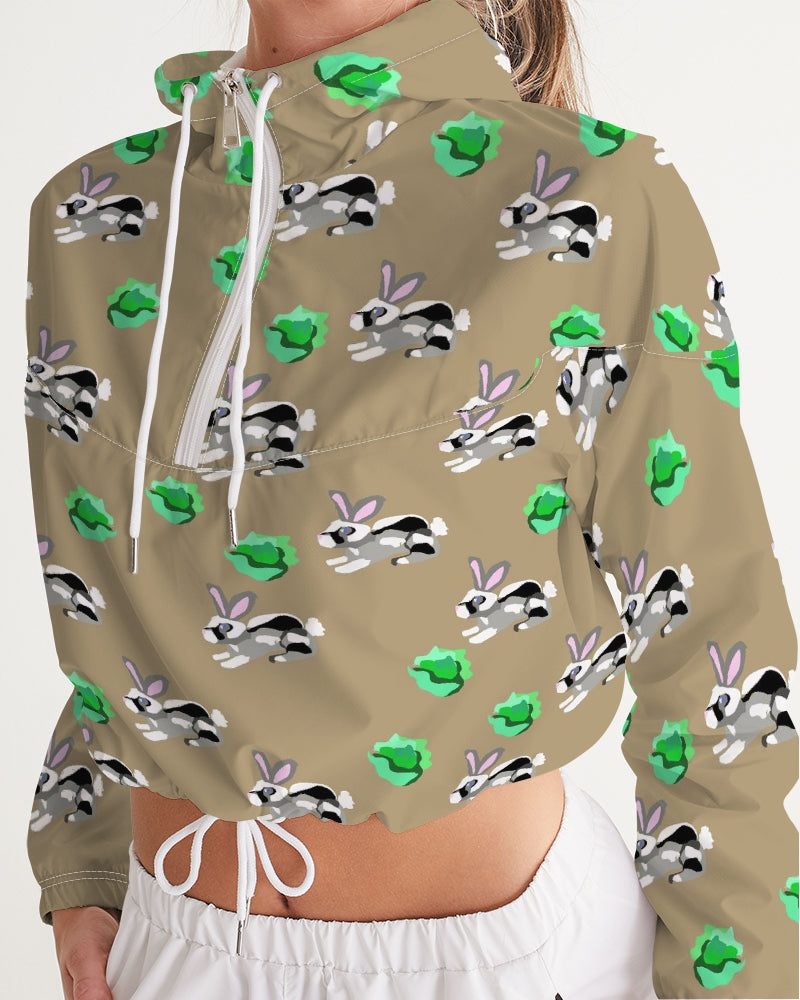 About The ArtBunnies Pattern Bunnies with lettuce Product DetailsMade of lightweight, water-resistant fabric, our Women's Cropped Windbreaker has flexible styling options. Look cute while you're on the go or rock a stylish look while on a run.