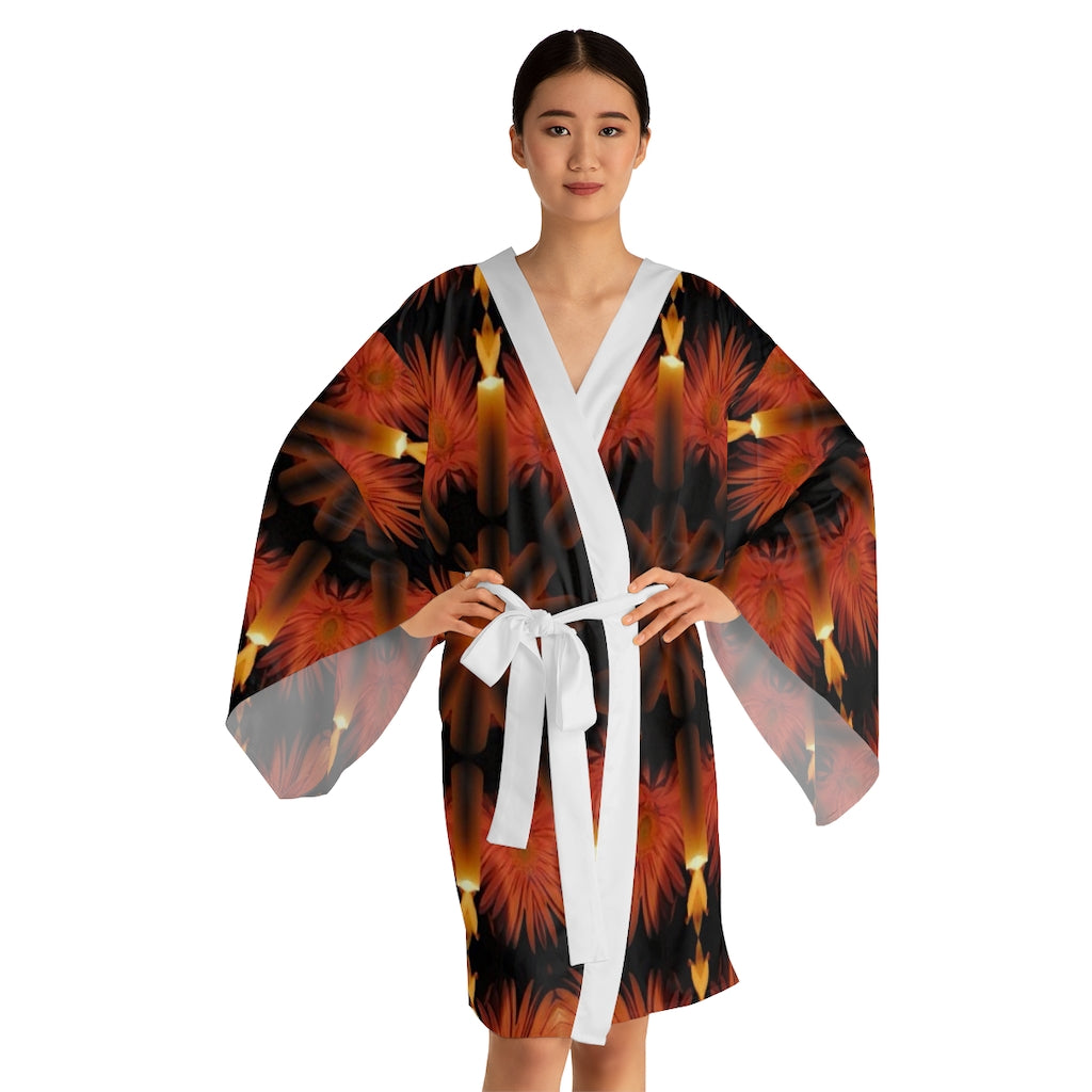 Candles and Flowers Kaleidoscope Long Sleeve Kimono Robe