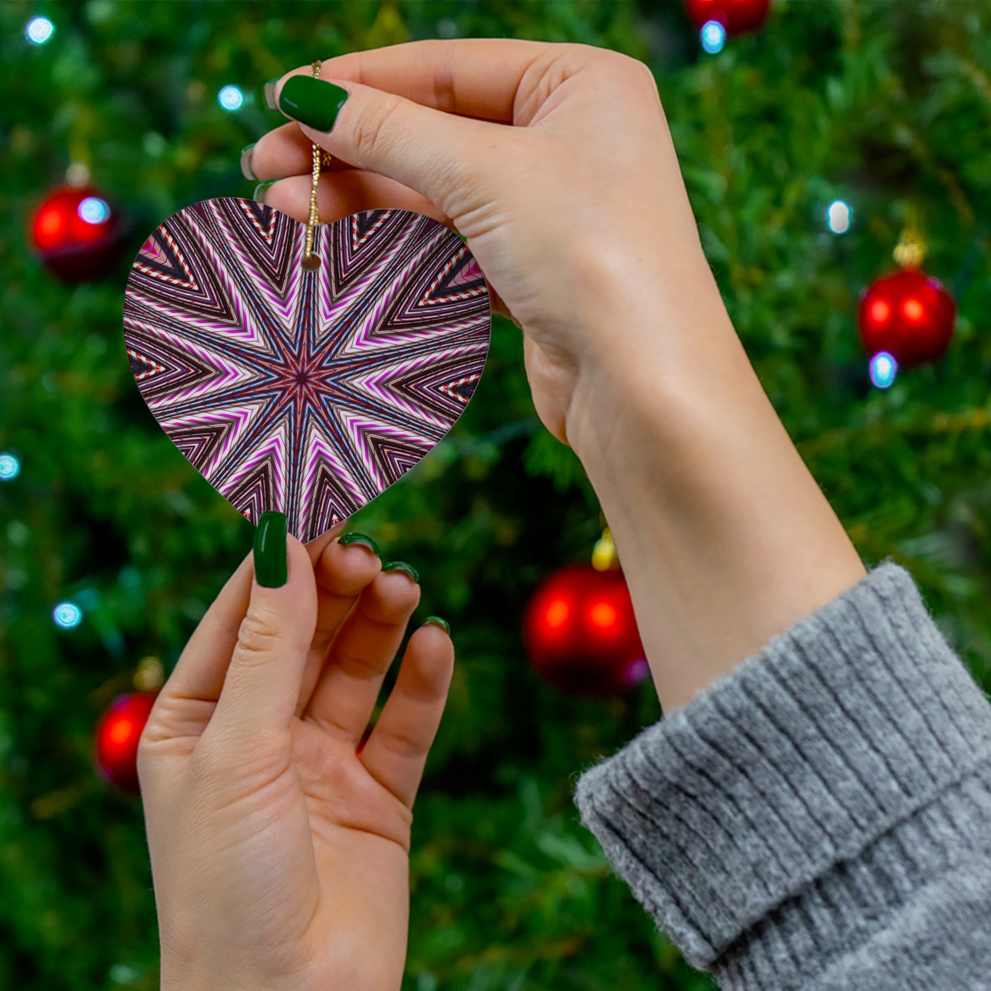 Candy Cane Kaleidoscope Star Ceramic Ornament — Pink Geometric Holiday Decoration