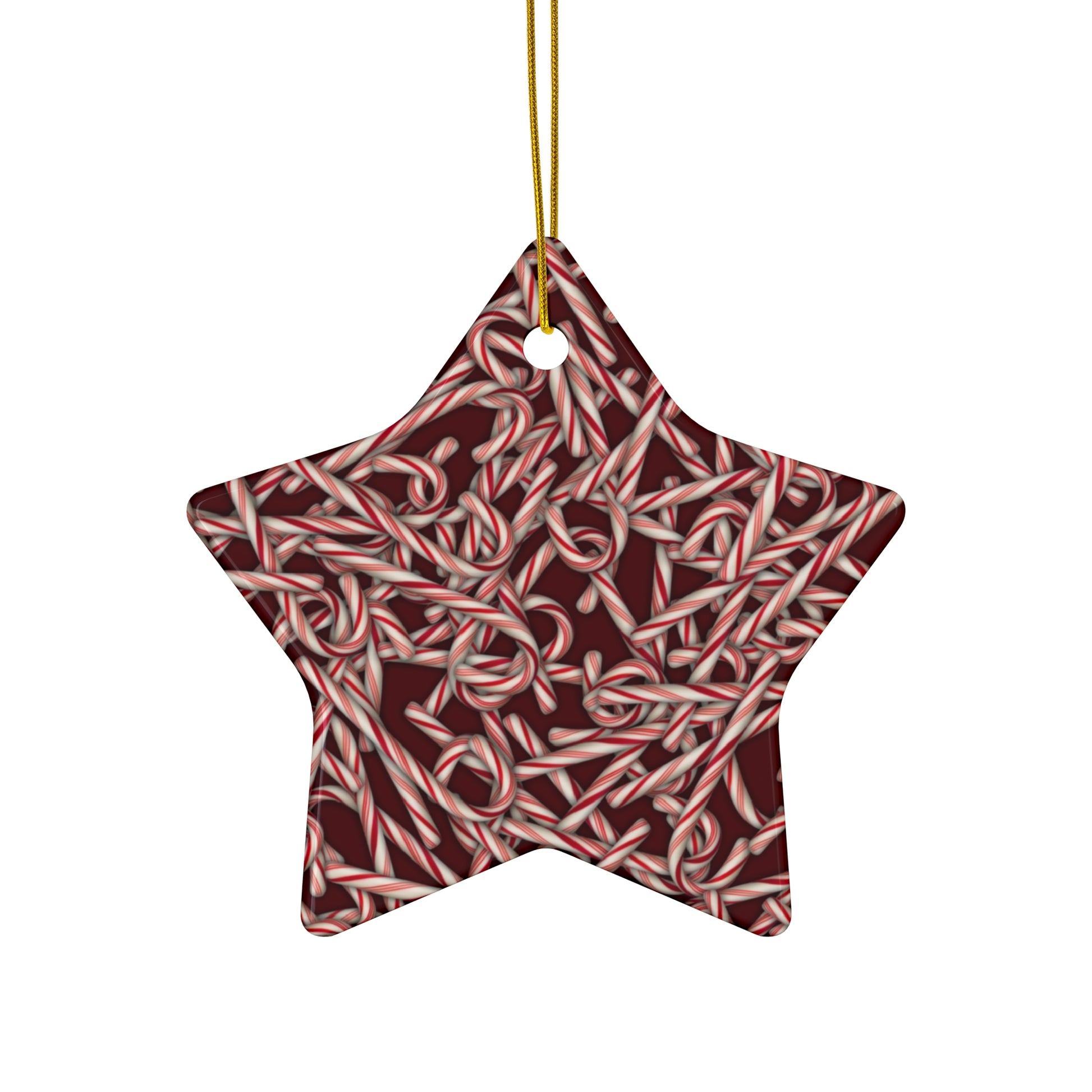 Candy Cane Pattern Ceramic Star Ornament — Holiday Christmas Tree Decoration
