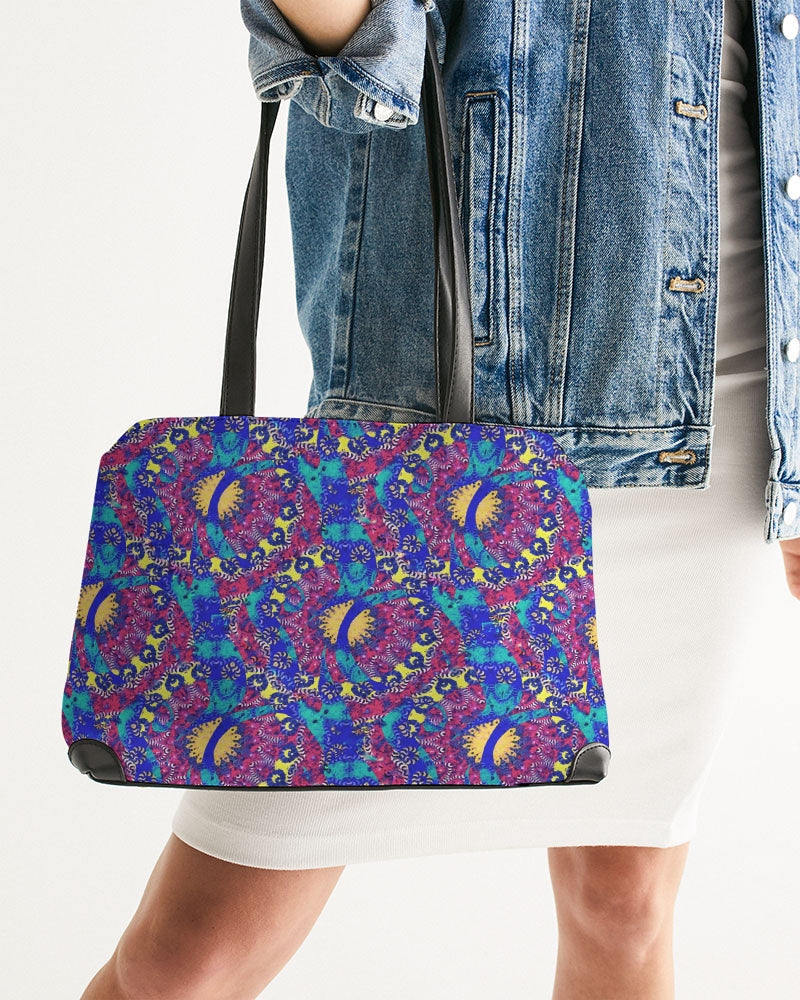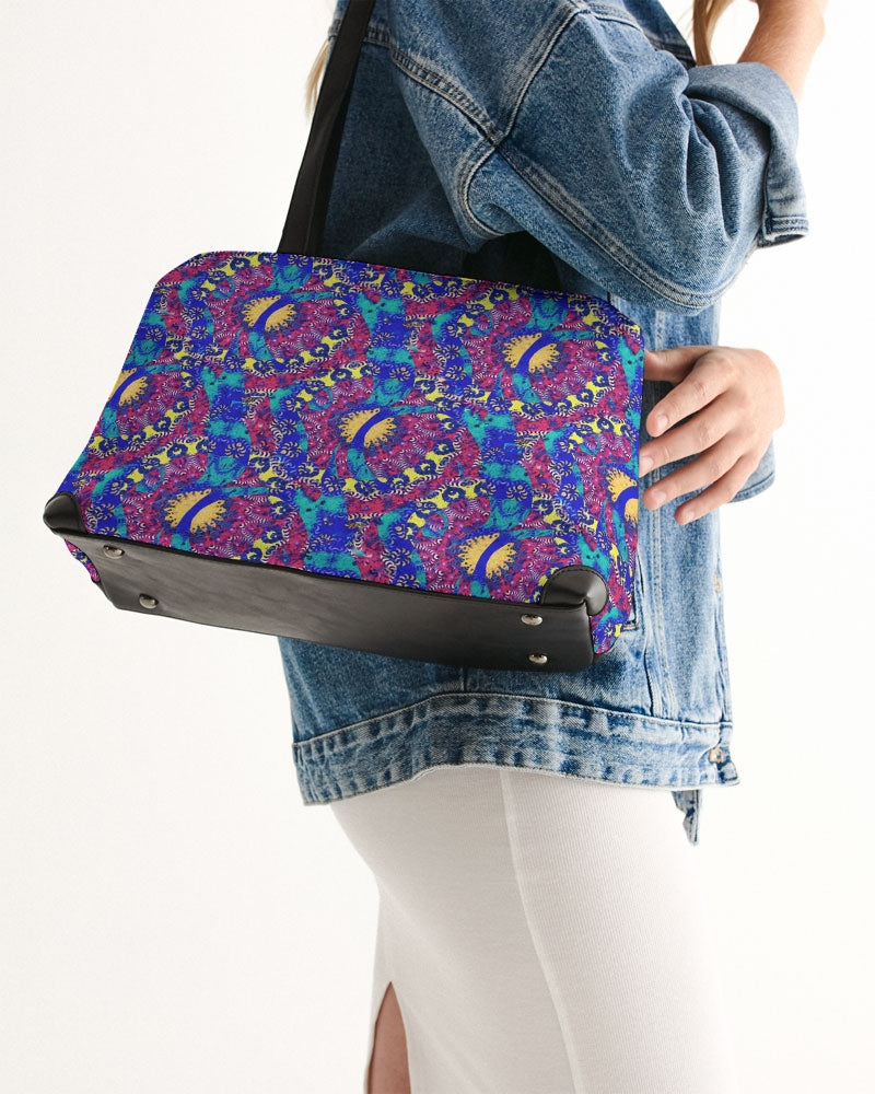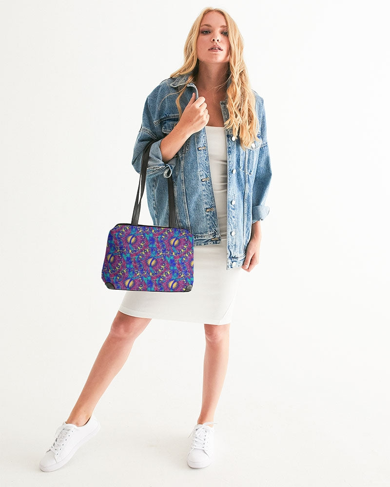 About The ArtCaribbean Grafitti In the colors of island homes, abstract pattern. Product DetailsClassy, cosmo, and customized, what more could you want? Our handmade Shoulder Bag features smooth faux leather and gunmetal hardware so you can sport your sophisticated custom designs.