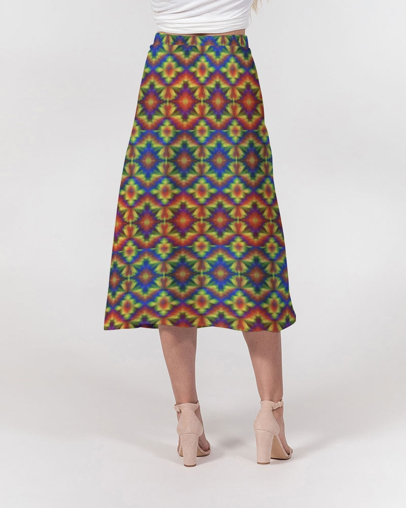 About The ArtCarnival Kaleidoscope Rainbow diamond pattern in kaleidoscope. Product DetailsTimeless and chic, our Women's A-line Midi Skirt is made from a beautifully draped smooth chiffon. Polished with a thick waistband and side zipper, it's fitted at your waist and has a flowy bottom.