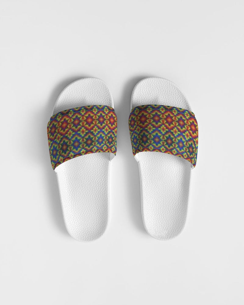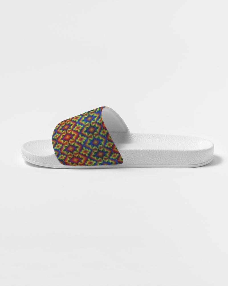About The ArtCarnival Kaleidoscope Rainbow diamond pattern in kaleidoscope. Product DetailsSlip on your Women's Slide Sandals for easy and comfortable style. Made with a soft upper strap that conforms to the natural movement of your foot and a conshioned footbed for all day wear.
