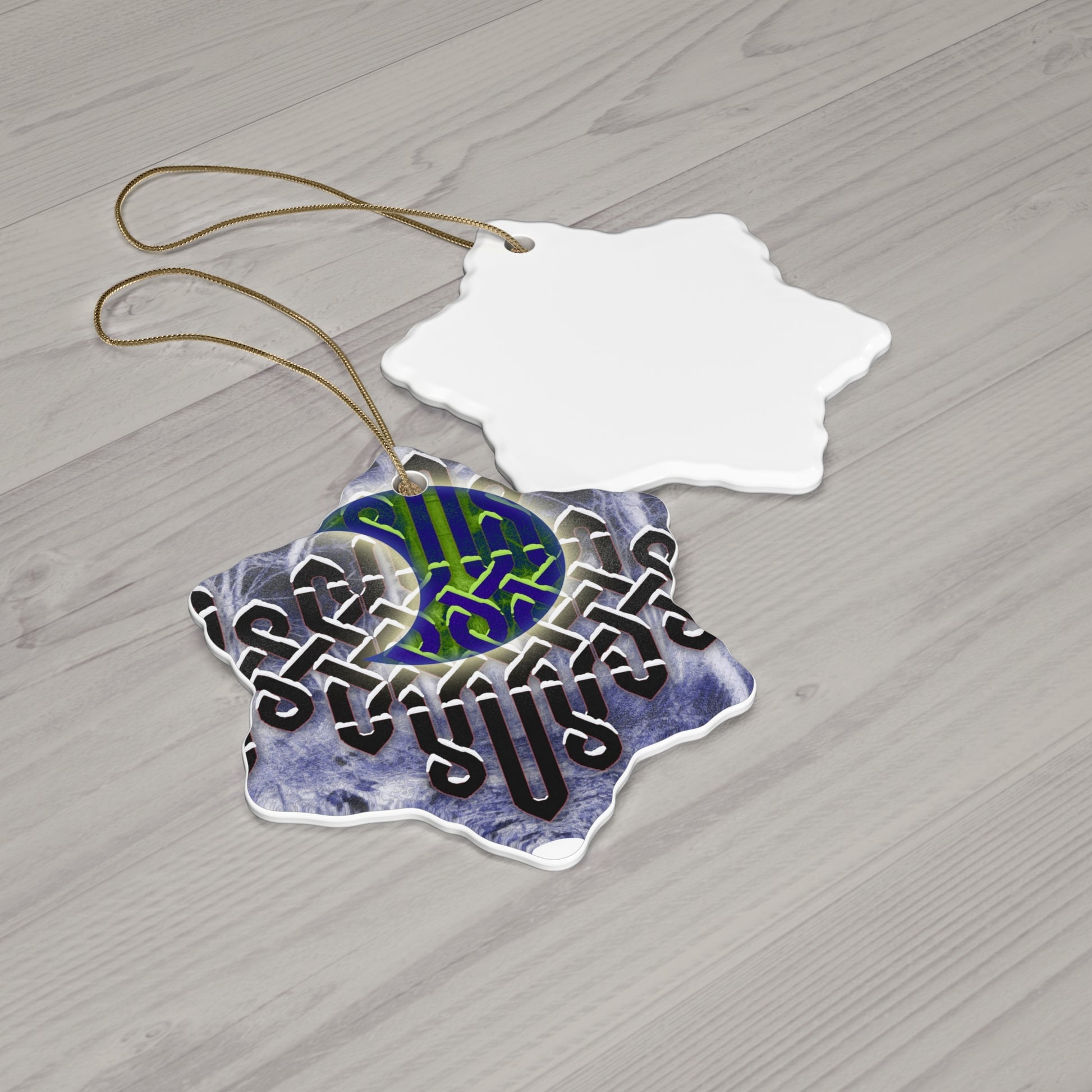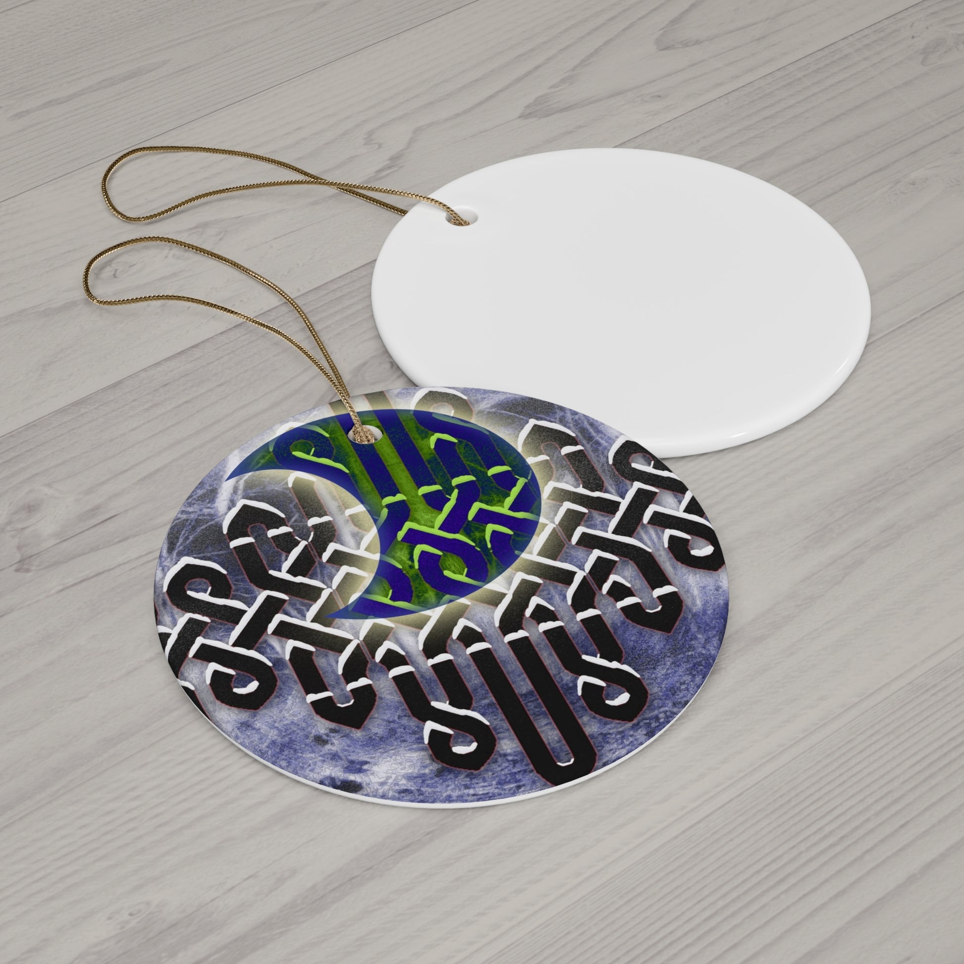 Celtic Moon Ceramic Star Ornament — Knotwork Holiday Decoration