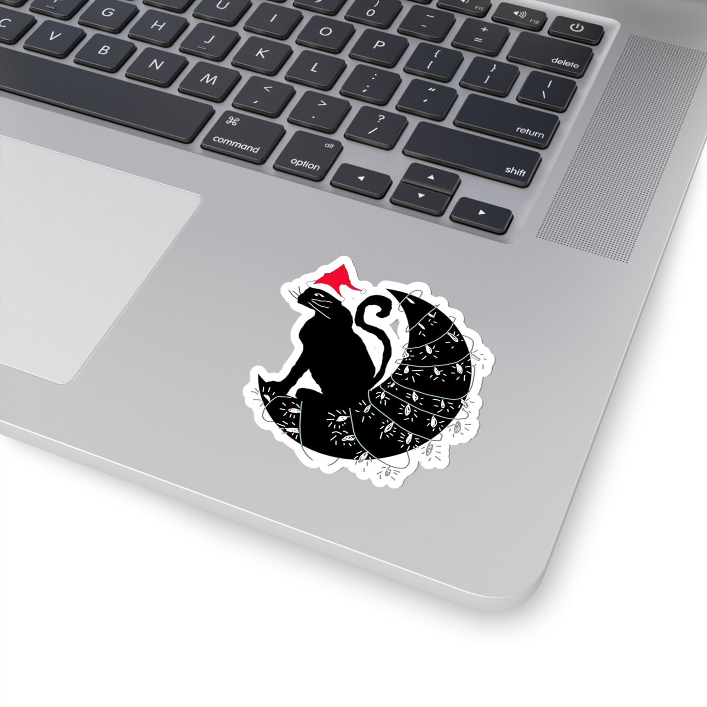 Christmas Cat on The Moon Kiss-Cut Stickers