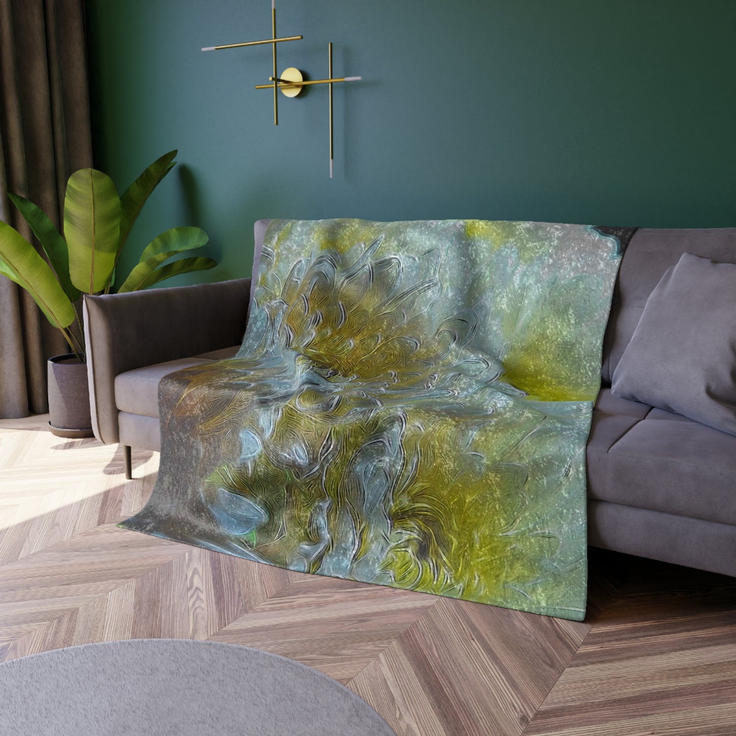 Super soft, super comfy—this crushed velvet blanket with an original custom design will be the perfect addition to the living room couch. It's made from high-quality, durable 100% polyester fabric with zig-zag stitches on its edges.