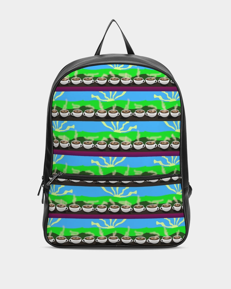 About The ArtCoffee Morning Pattern Coffee cups and a sunrise as if you left the cup on the windowsill and the sweet morning air came streaming in. Product DetailsElegance meets practicality in our Classic Faux Leather Backpack, designed for those who seek a compact yet stylish daily companion. Ideal for fashion-forward individuals, this smaller-sized backpack is perfect for leisurely outings, coffee dates, and exploring the city while its timeless faux leather design adds a touch of sophistication to your everyday adventures.