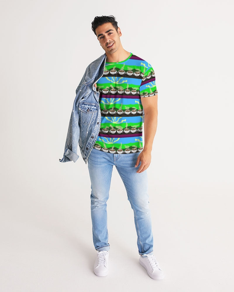 About The ArtCoffee Morning Pattern Coffee cups and a sunrise as if you left the cup on the windowsill and the sweet morning air came streaming in. Product DetailsHandmade with premium wear resistant fabric, this carefully crafted tee is a daily wardrobe essential. Dressed up or down, our Men's Tee offers complete comfort and style.