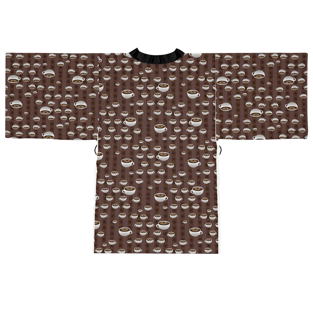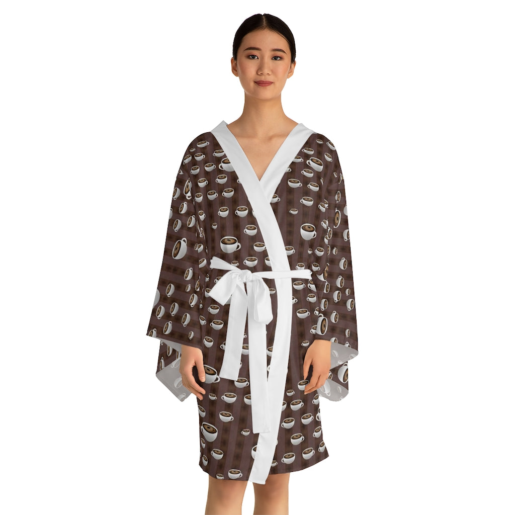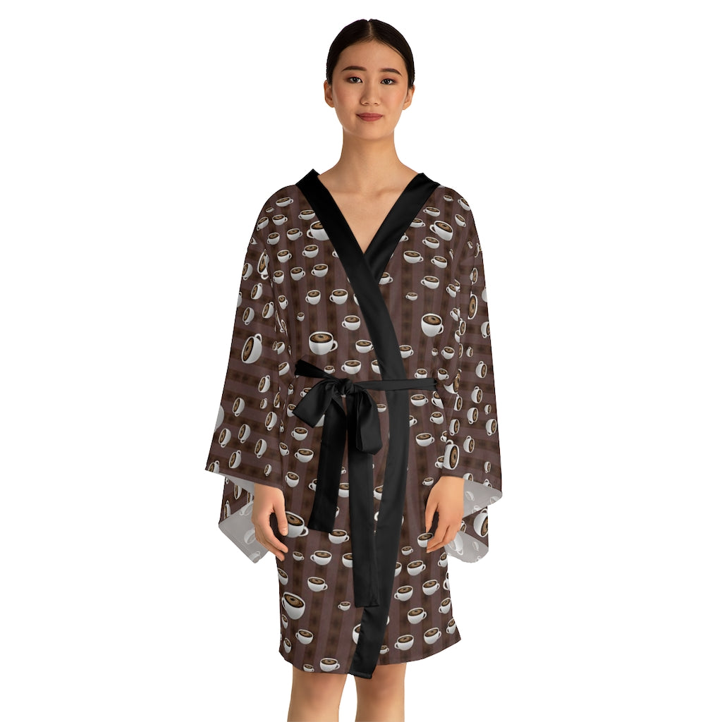 Coffee With Coffee Stripes Long Sleeve Kimono Robe