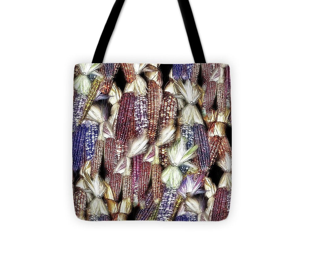 Purchase a tote bag featuring the digital art "Colorful Fall Corn" by Cindy Boyd. Our tote bags are made from soft, durable, poly-poplin fabric and include a 1" black strap for easy carrying on your shoulder. All seams are double-stitched for added durability. Each tote bag is machine-washable in cold water and is printed on both sides using the same image.